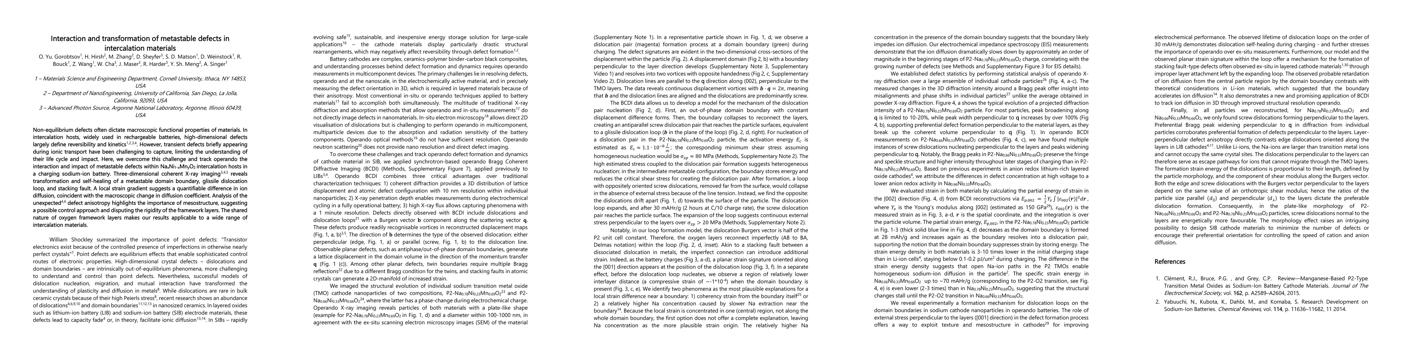 The research utilizes operando three-dimensional coherent X-ray imaging to track the interaction and transformation of metastable defects in NaxNi1-xMnyO2 intercalation hosts within a charging sodium-ion battery.