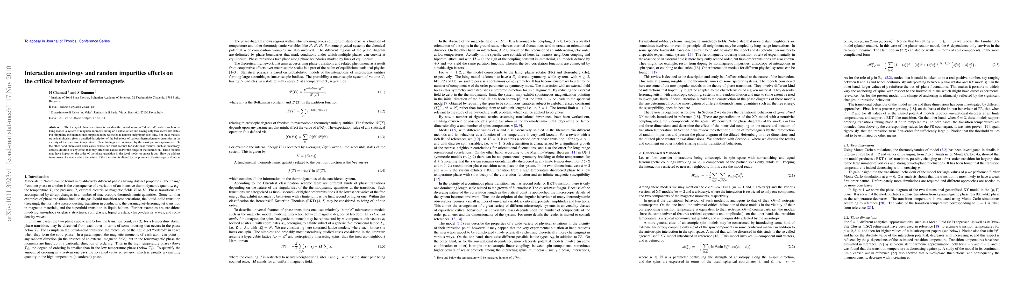 The theory of phase transitions is based on the consideration of "idealized" models, such as the Ising model: a system of magnetic moments living on a cubic lattice and having only two accessible states. For simplicity the interaction is supposed to be restricted to nearest--neighbour sites only. For these models, statistical physics gives a detailed description of the behaviour of various thermodynamic quantities in the vicinity of the transition temperature. These findings are confirmed by the most precise experiments. On the other hand, there exist other cases, where one must account for additional features, such as anisotropy, defects, dilution or any effect that may affect the nature and/or the range of the interaction. These features may have impact on the order of the phase transition in the ideal model or smear it out. Here we address two classes of models where the nature of the transition is altered by the presence of anisotropy or dilution.