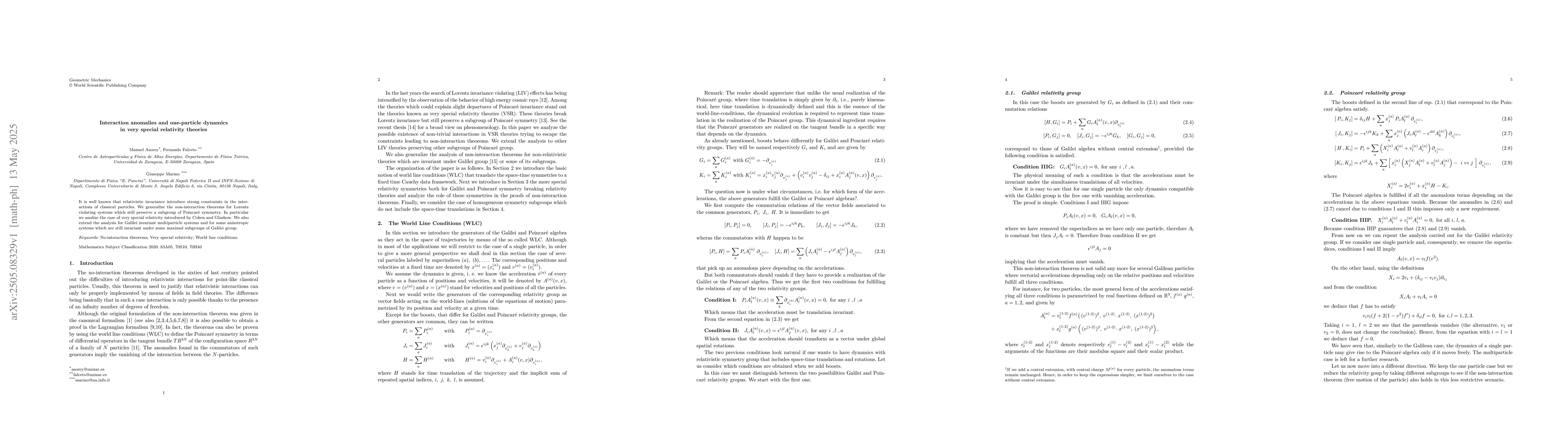 The paper presents a comprehensive study of one-particle dynamics and interaction anomalies in Lorentz-violating systems with Poincaré and Galilei subgroup symmetries, generalizing previous non-interaction theorems.