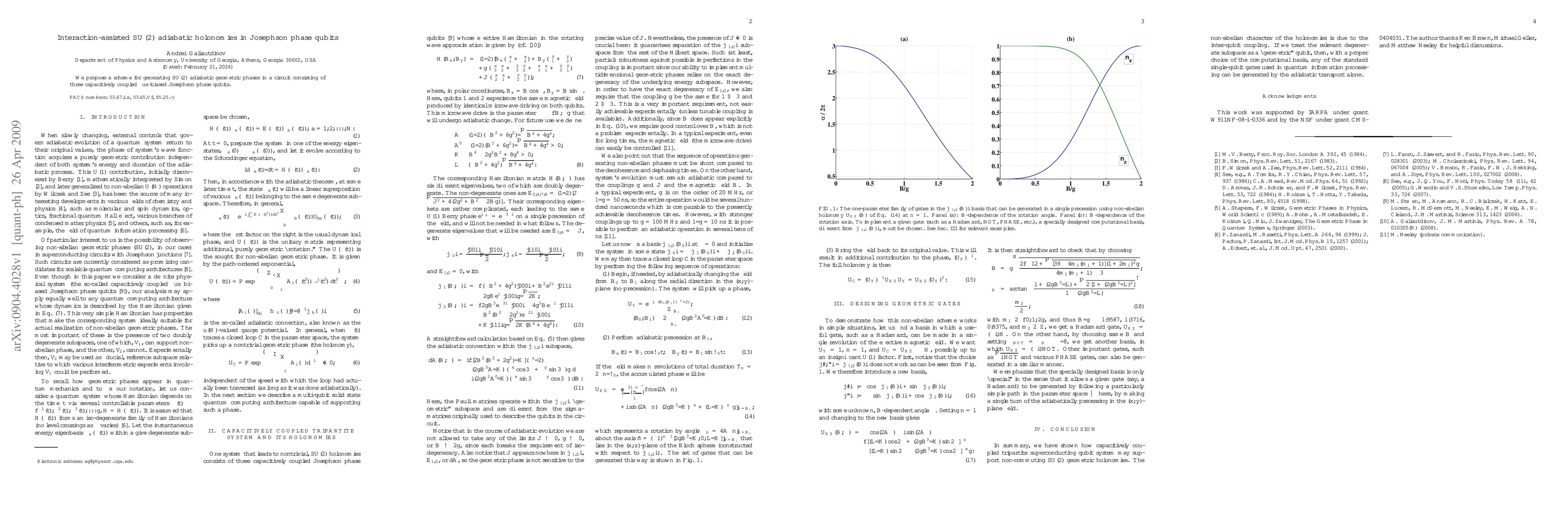 Researchers propose a scheme for generating SU(2) adiabatic geometric phases in Josephson phase qubits using a circuit of three capacitively coupled qubits. This method could enable the creation of complex quantum states in these systems.