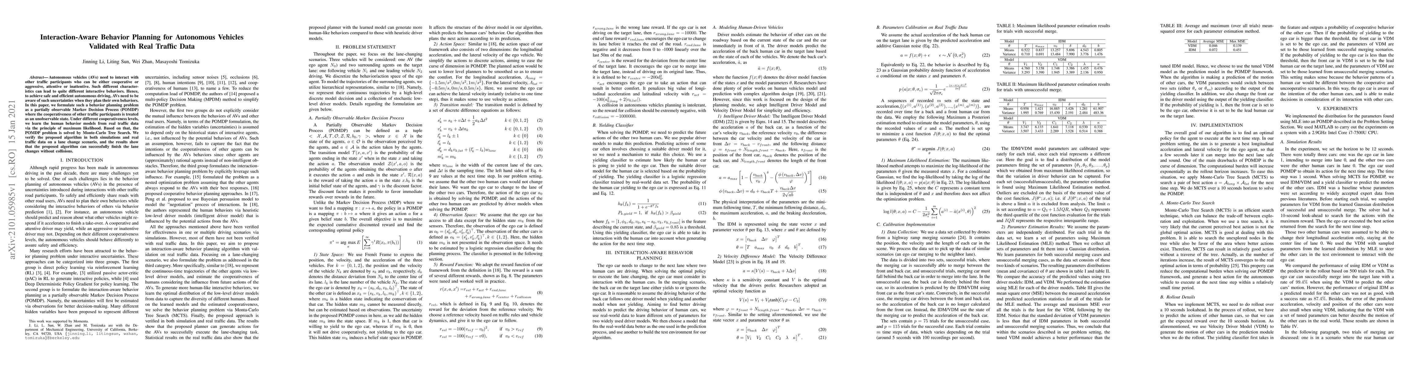 This paper proposes a behavior planning method for autonomous vehicles using a POMDP framework to handle interactions with other traffic participants. The algorithm learns human behavior models from real traffic data and solves the POMDP using Monte-Carlo Tree Search, demonstrating successful lane changes without collisions in both simulations and real-world scenarios.