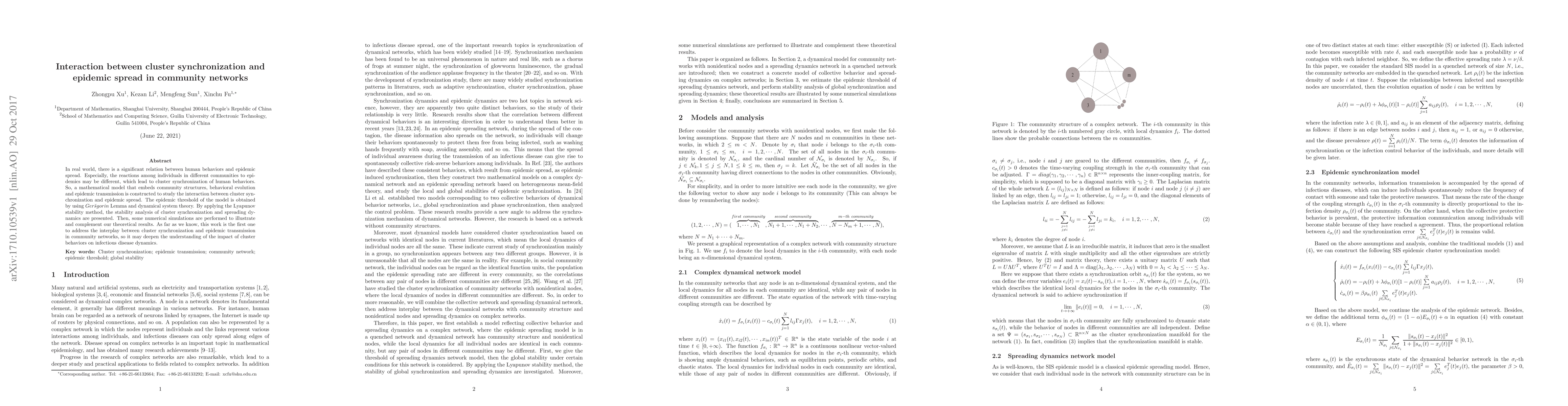 This paper constructs a mathematical model to explore the interplay between cluster synchronization of human behaviors and epidemic spread in community networks. It employs Gersgorin Lemma and dynamical system theory to derive the epidemic threshold and uses Lyapunov stability methods to analyze the stability of cluster synchronization and epidemic dynamics.