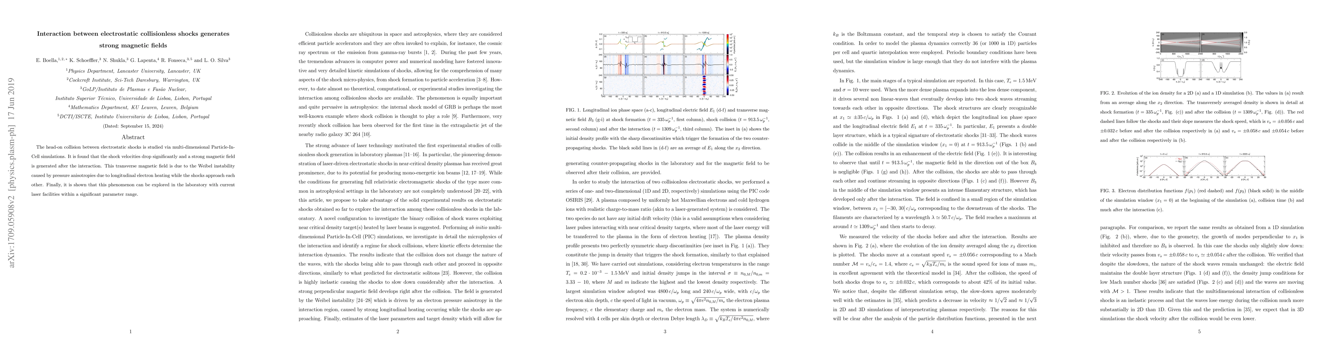 Research shows that when electrostatic shocks collide head-on, they generate strong magnetic fields due to pressure anisotropies caused by electron heating. This phenomenon can be replicated in laboratory experiments with current laser facilities.