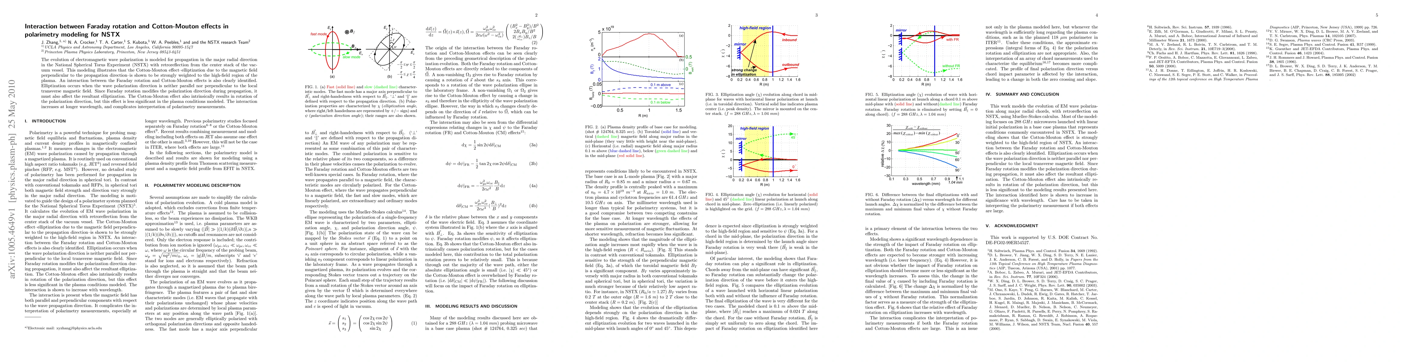 This paper models electromagnetic wave polarization in NSTX, showing that the Cotton-Mouton effect significantly influences polarization in the high-field plasma region. It identifies an interaction between the Faraday rotation and Cotton-Mouton effects, complicating polarimetry measurements, especially at longer wavelengths.