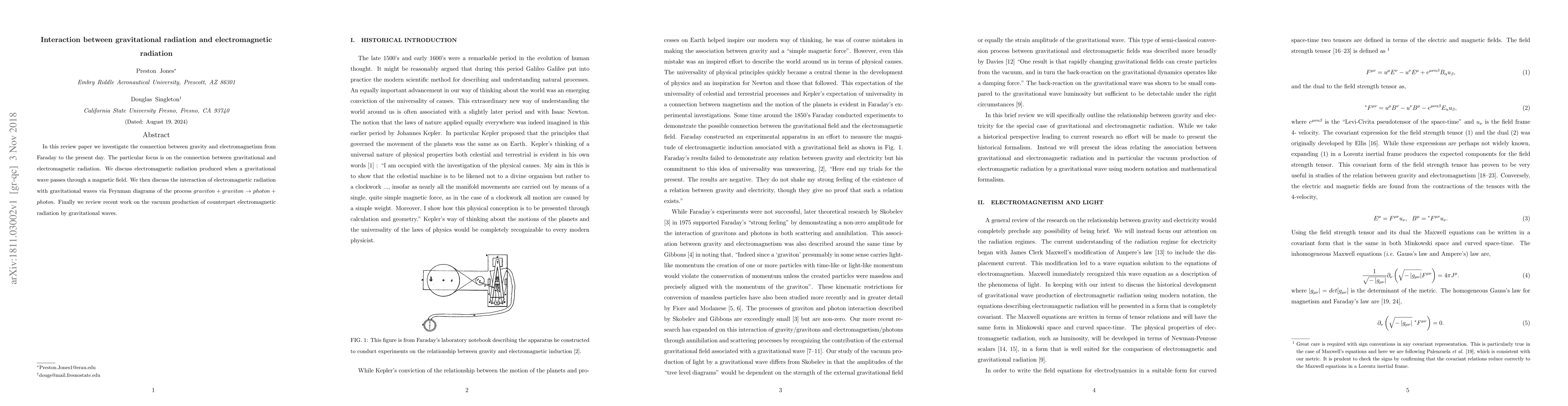 This review explores the historical and contemporary connections between gravity and electromagnetism, particularly focusing on the interaction between gravitational and electromagnetic radiation, including the production of electromagnetic radiation by gravitational waves and the interaction of electromagnetic radiation with gravitational waves via Feynman diagrams. Recent studies on the vacuum production of electromagnetic radiation by gravitational waves are also reviewed.