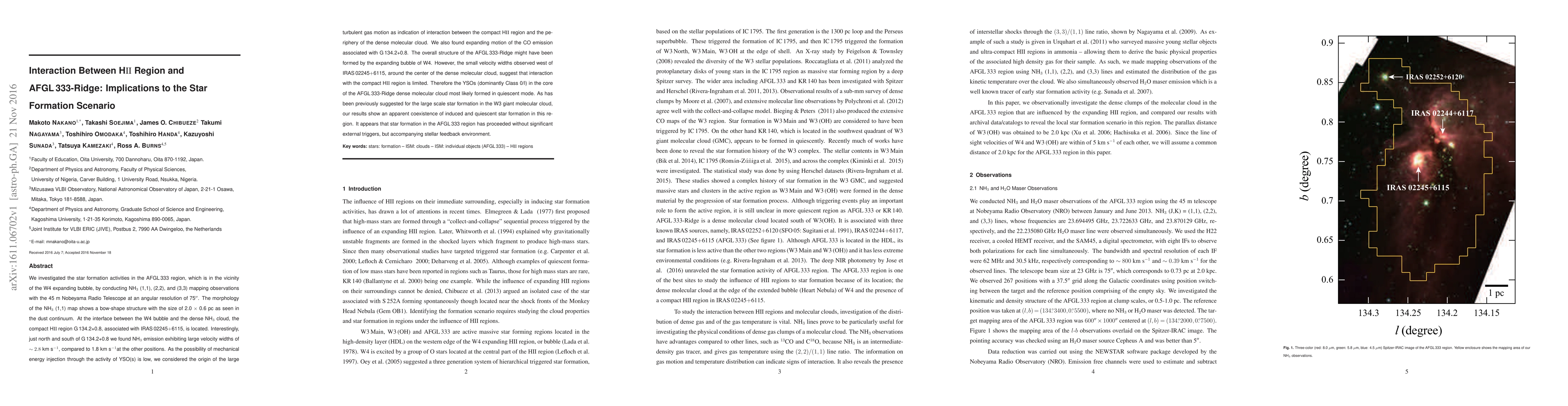 This paper investigates star formation in the AFGL333 region near the W4 expanding bubble, revealing a bow-shaped NH3 structure and large velocity widths north and south of the HII region G134.2+0.8, suggesting interaction with the dense molecular cloud. The study concludes that while the W4 bubble may have shaped the overall structure, star formation in the dense core likely occurred in a quiescent mode, indicating a coexistence of induced and quiescent star formation.