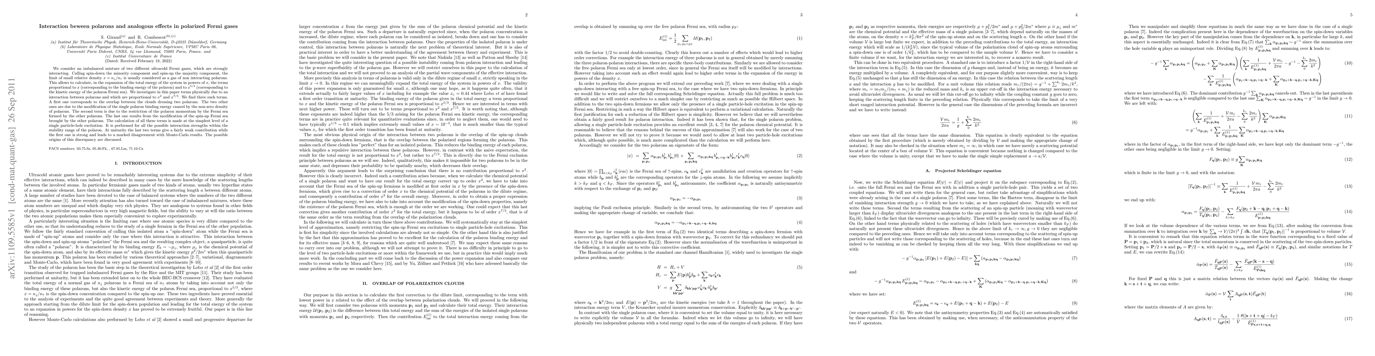 Researchers investigated the interaction between polarons in ultracold Fermi gases, finding three terms that arise from the overlap of polaron clouds and modifications to their binding energy due to the presence of other polarons.