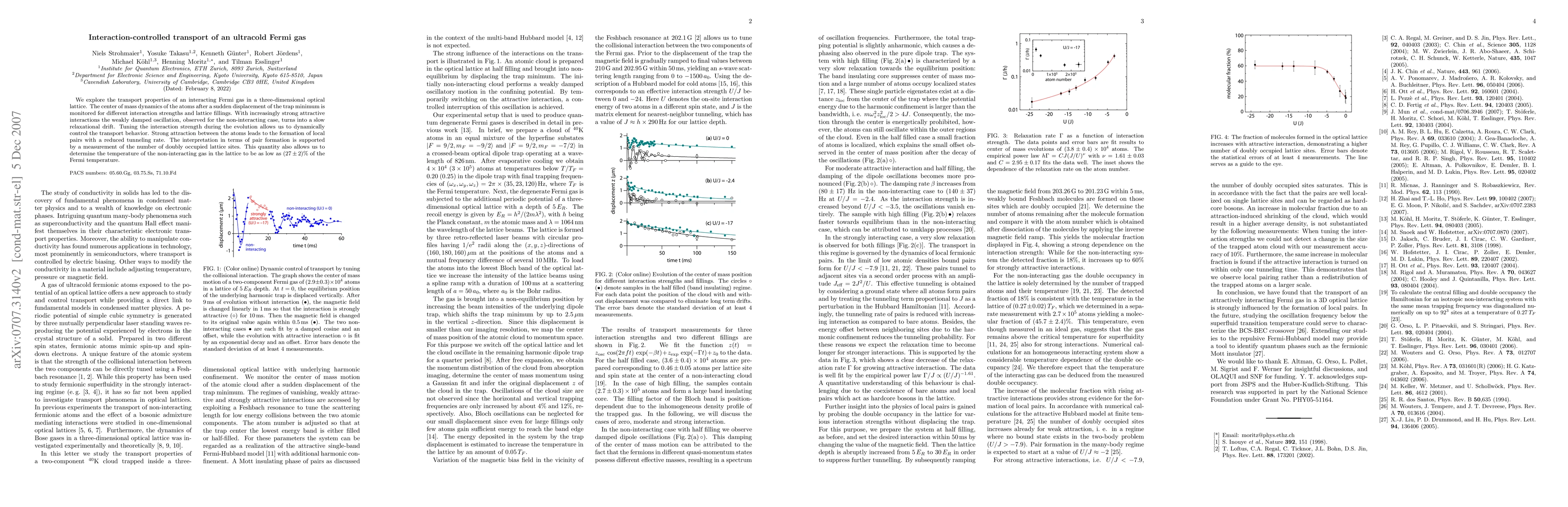 Researchers studied how strong interactions between ultracold Fermi gas atoms affect their transport behavior in a 3D optical lattice. Strong attraction leads to local pair formation, reducing tunneling rates and changing the transport dynamics.