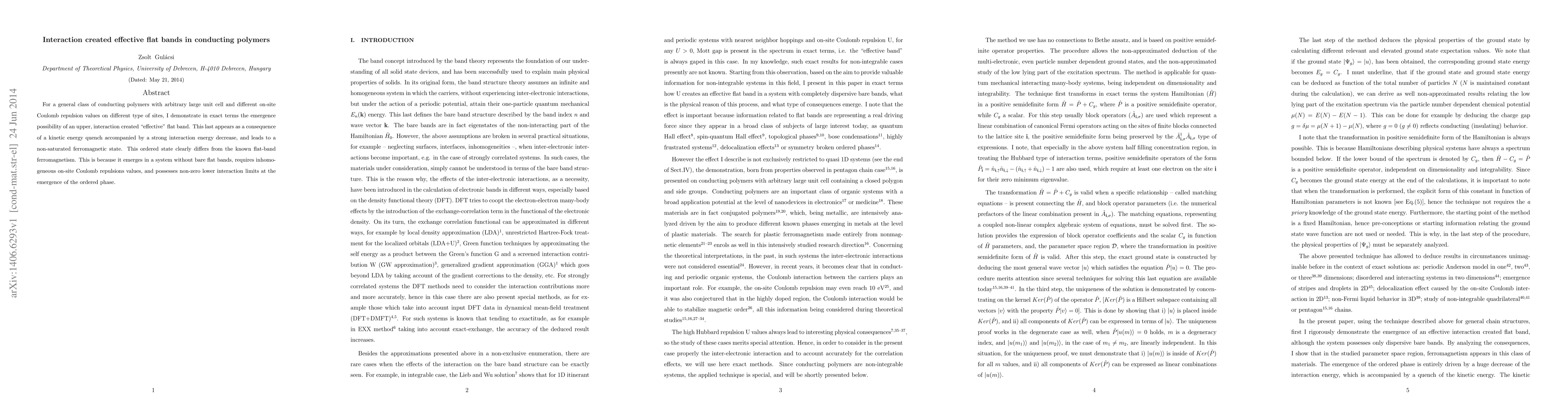 Researchers demonstrate that strong interactions can create effective flat bands in conducting polymers, leading to a non-saturated ferromagnetic state with unique properties.