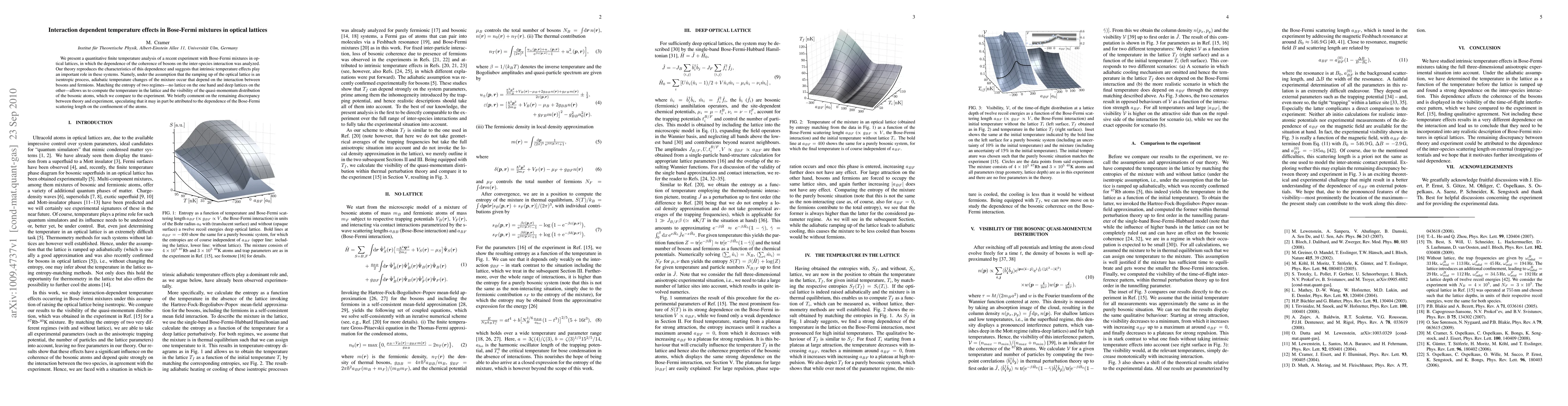 We present a quantitative finite temperature analysis of a recent experiment with Bose-Fermi mixtures in optical lattices, in which the dependence of the coherence of bosons on the inter-species interaction was analyzed. Our theory reproduces the characteristics of this dependence and suggests that intrinsic temperature effects play an important role in these systems. Namely, under the assumption that the ramping up of the optical lattice is an isentropic process, adiabatic temperature changes of the mixture occur that depend on the interaction between bosons and fermions. Matching the entropy of two regimes---no lattice on the one hand and deep lattices on the other---allows us to compute the temperature in the lattice and the visibility of the quasi-momentum distribution of the bosonic atoms, which we compare to the experiment. We briefly comment on the remaining discrepancy between theory and experiment, speculating that it may in part be attributed to the dependence of the Bose-Fermi scattering length on the confinement of the atoms.