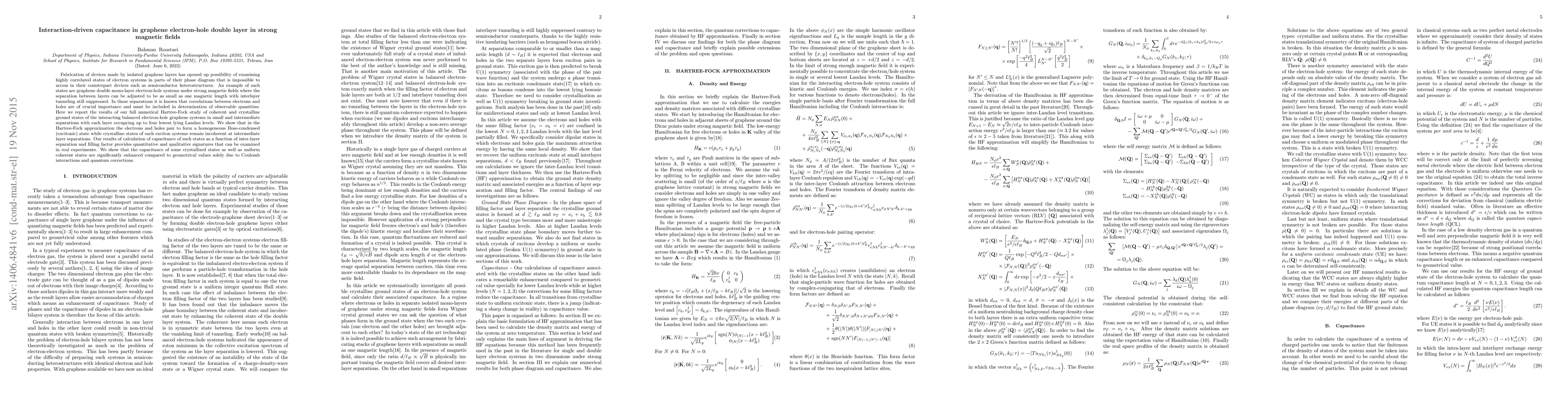 Fabrication of devices made by isolated Graphene or Graphene-like single layers (such as h-BN) has opened up possibility of examining highly correlated states of electron systems in parts of their phase diagram that is impossible to access in their counterpart devices such as semiconductor heterostructures. An example of such states are Graphene (or Graphene like) double layer electron-hole systems under strong magnetic fields where the separation between layers can be of the order of one magnetic length with interlayer tunneling still suppressed. In those separations correlations between electrons and holes are of crucial importance and must be included in determination of observable quantities. Here we report a thorough mean-field study of the coherent and crystalline ground states of the interacting balanced electron-hole Graphene systems in small and intermediate separations with each layer occupying up to four lowest lying Landau levels. We calculate the capacitance of such states as a function of layer separation and filling factor. Our calculations show significant enhancement of the capacitance compared to geometrical value due to quantum mechanical corrections.