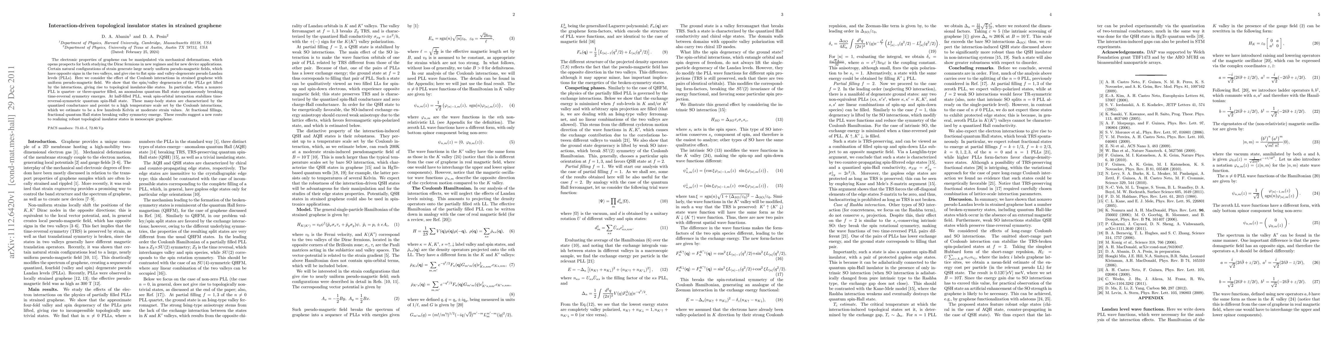 This study explores how mechanical strain in graphene can induce topological insulator states through interaction-driven lifting of spin/valley degeneracies in pseudo Landau levels, leading to anomalous quantum Hall and quantum spin-Hall states, with robust conductance at relatively high temperatures.