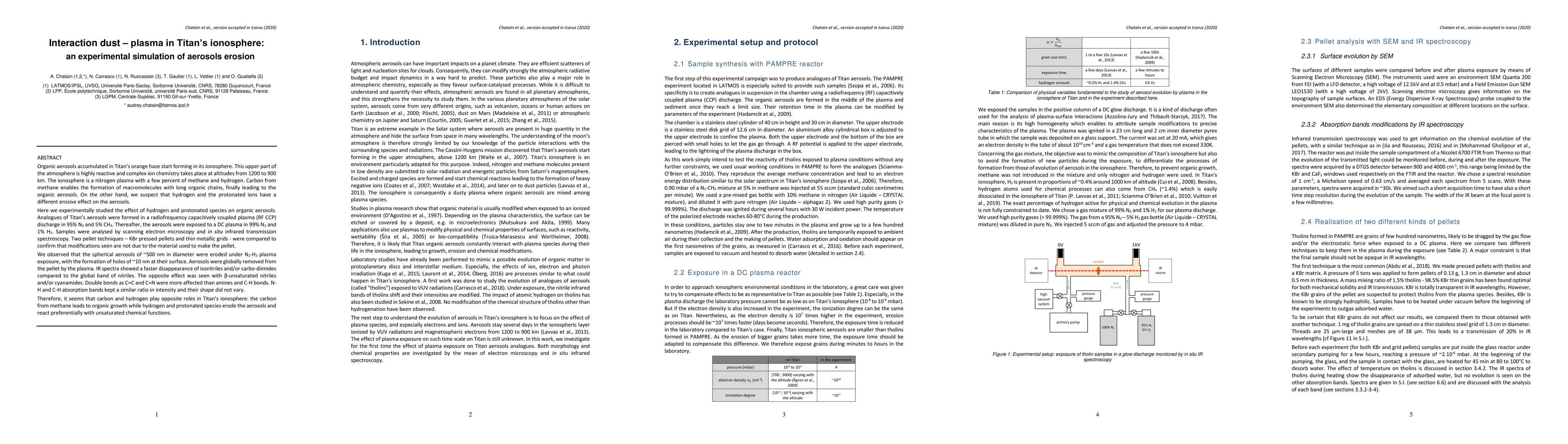 Organic aerosols accumulated in Titan's orange haze start forming in its ionosphere. This upper part of the atmosphere is highly reactive and complex ion chemistry takes place at altitudes from 1200 to 900 km. The ionosphere is a nitrogen plasma with a few percent of methane and hydrogen. Carbon from methane enables the formation of macromolecules with long organic chains, finally leading to the organic aerosols. On the other hand, we suspect that hydrogen and the protonated ions have a different erosive effect on the aerosols. Here we experimentally studied the effect of hydrogen and protonated species on organic aerosols. Analogues of Titan's aerosols were formed in a CCP RF plasma discharge in 95% N2 and 5% CH4. Thereafter, the aerosols were exposed to a DC plasma in 99% N2 and 1% H2. Samples were analysed by scanning electron microscopy and in situ infrared transmission spectroscopy. Two pellet techniques - KBr pressed pellets and thin metallic grids - were compared to confirm that modifications seen are not due to the material used to make the pellet. We observed that the spherical aerosols of ~500 nm in diameter were eroded under N2-H2 plasma exposure, with the formation of holes of ~10 nm at their surface. Aerosols were globally removed from the pellet by the plasma. IR spectra showed a faster disappearance of isonitriles and/or carbo-diimides compared to the global band of nitriles. The opposite effect was seen with beta-unsaturated nitriles and/or cyanamides. Double bonds as C=C and C=N were more affected than amines and C-H bonds. N-H and C-H absorption bands kept a similar ratio in intensity and their shape did not vary. Therefore, it seems that carbon and hydrogen play opposite roles in Titan's ionosphere: the carbon from methane lead to organic growth while hydrogen and protonated species erode the aerosols and react preferentially with unsaturated chemical functions.