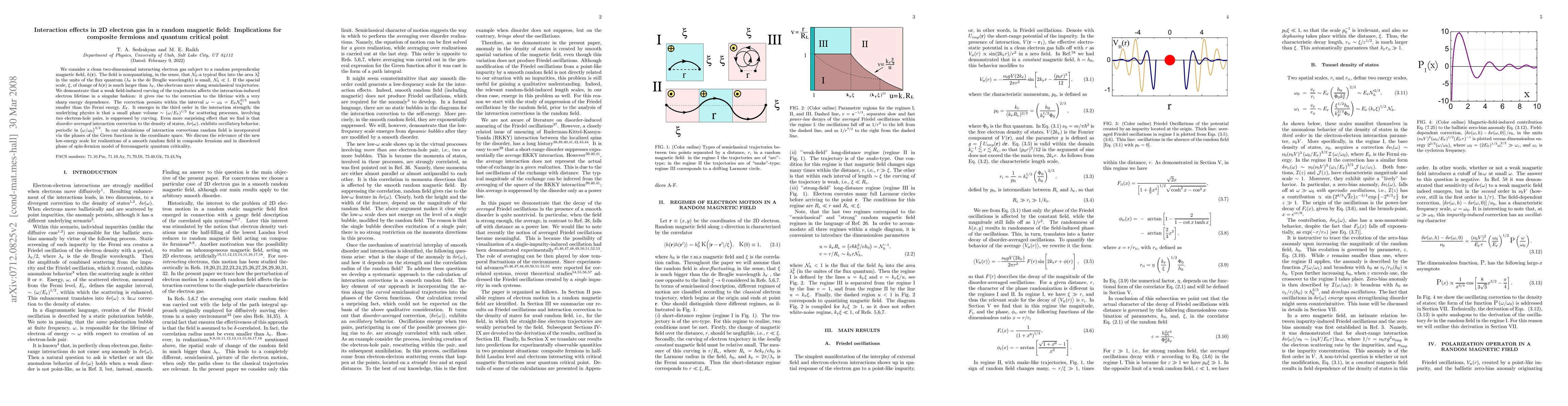 We consider a clean two-dimensional interacting electron gas subject to a random perpendicular magnetic field, h({\bf r}). The field is nonquantizing, in the sense, that {\cal N}_h-a typical flux into the area \lambda_{\text{\tiny F}}^2 in the units of the flux quantum (\lambda_{\text{\tiny F}} is the de Broglie wavelength) is small, {\cal N}_h\ll 1. If the spacial scale, \xi, of change of h({\bf r}) is much larger than \lambda_{\text{\tiny F}}, the electrons move along semiclassical trajectories. We demonstrate that a weak field-induced curving of the trajectories affects the interaction-induced electron lifetime in a singular fashion: it gives rise to the correction to the lifetime with a very sharp energy dependence. The correction persists within the interval \omega \sim \omega_0= E_{\text{\tiny F}}{\cal N}_h^{2/3} much smaller than the Fermi energy, E_{\text{\tiny F}}. It emerges in the third order in the interaction strength; the underlying physics is that a small phase volume \sim (\omega/E_{\text{\tiny F}})^{1/2} for scattering processes, involving {\em two} electron-hole pairs, is suppressed by curving. Even more surprising effect that we find is that {\em disorder-averaged} interaction correction to the density of states, \delta\nu(\omega), exhibits {\em oscillatory} behavior, periodic in \bigl(\omega/\omega_0\bigr)^{3/2}. In our calculations of interaction corrections random field is incorporated via the phases of the Green functions in the coordinate space. We discuss the relevance of the new low-energy scale for realizations of a smooth random field in composite fermions and in disordered phase of spin-fermion model of ferromagnetic quantum criticality.