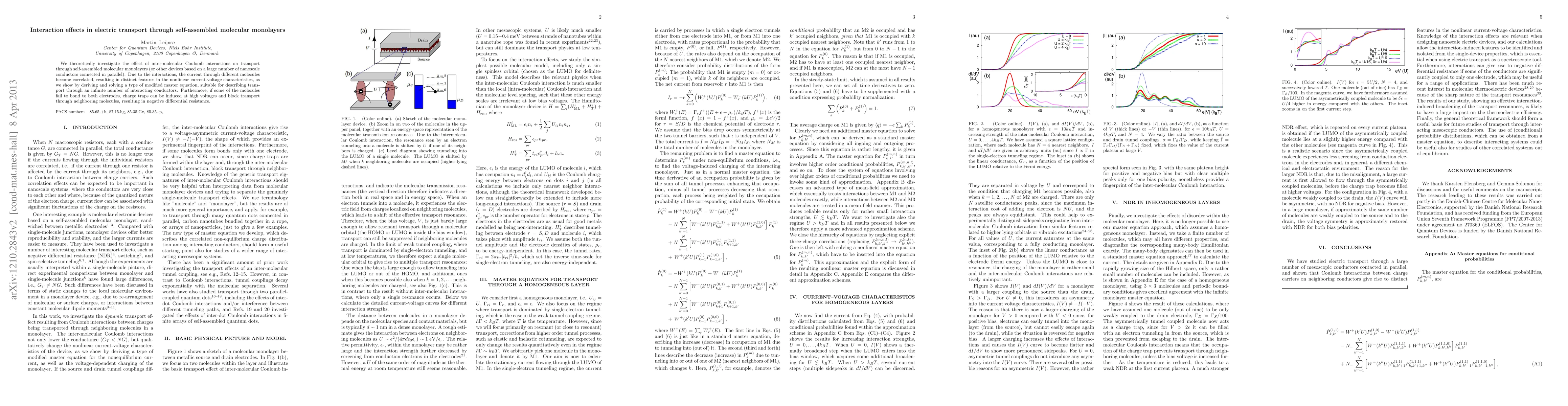 We theoretically investigate the effect of inter-molecular Coulomb interactions on transport through molecular monolayers (or other devices based on a large number of nanoscale conductors connected in parallel). Due to the interactions, the current through different molecules become correlated, resulting in distinct features in the non-linear current-voltage characteristics, as we show by deriving and solving a type of modified master equation, suitable for describing transport through an infinite number of interacting conductors. Furthermore, if some of the molecules fail to bond to both electrodes, charge traps can be induced at high voltages and block transport through neighboring molecules, resulting in negative differential resistance.