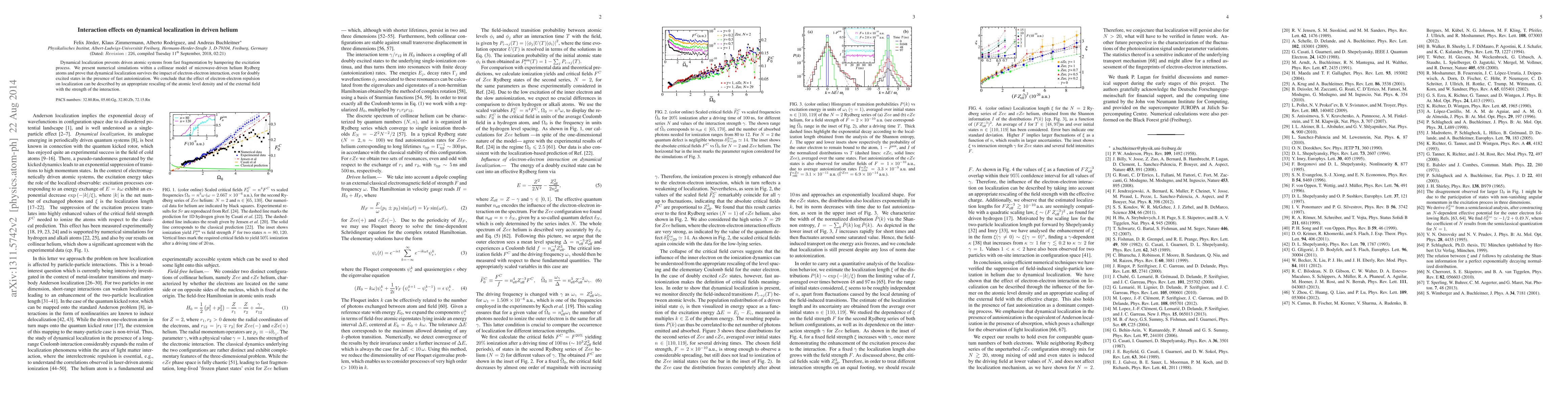 Dynamical localization prevents driven atomic systems from fast fragmentation by hampering the excitation process. We present numerical simulations within a collinear model of microwave-driven helium Rydberg atoms and prove that dynamical localization survives the impact of electron-electron interaction, even for doubly excited states in the presence of fast autoionization. We conclude that the effect of electron-electron repulsion on localization can be described by an appropriate rescaling of the atomic level density and of the external field with the strength of the interaction.