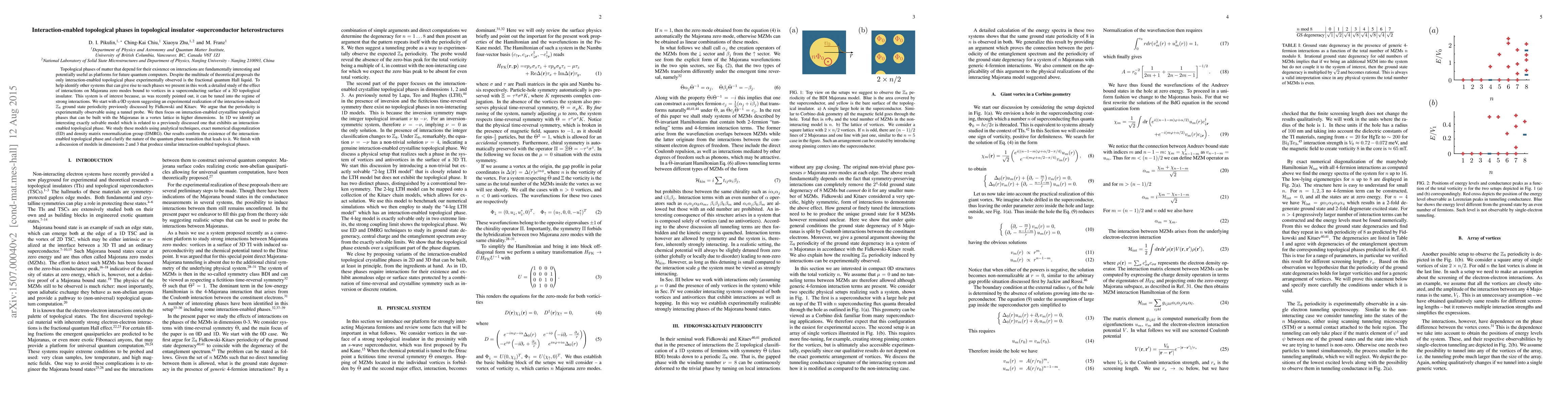 This paper investigates interaction-enabled topological phases in topological insulator-superconductor heterostructures, focusing on Majorana zero modes bound to vortices. The authors propose a detailed study to identify systems that can exhibit such phases, confirming the existence of an interaction-enabled topological phase in 1D models and discussing potential in higher dimensions.