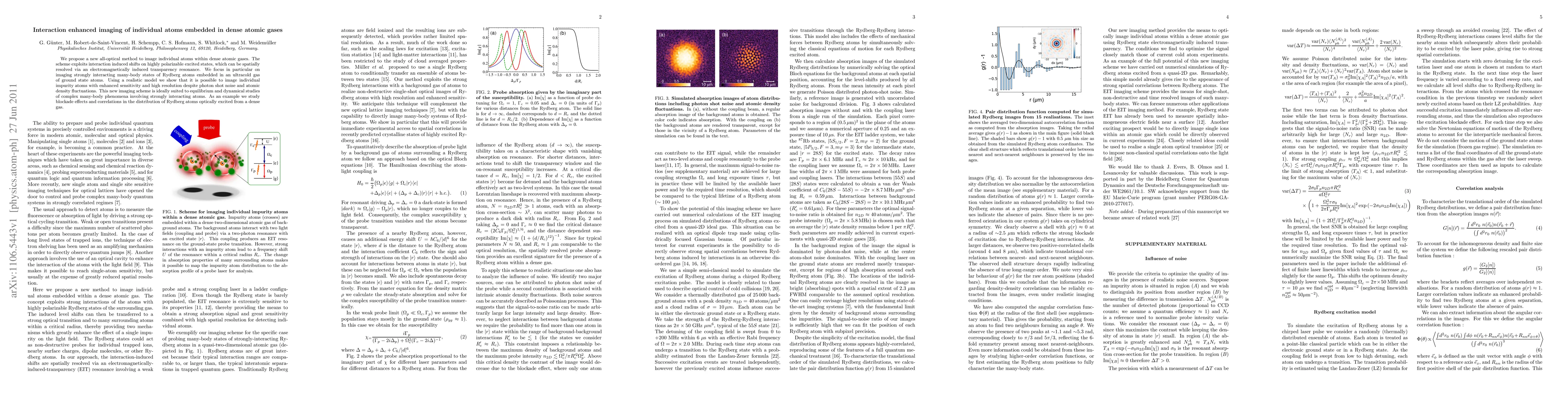 This paper proposes a novel all-optical method to image individual atoms within dense atomic gases by exploiting interaction-induced shifts on highly polarizable excited states. The method achieves enhanced sensitivity and high resolution despite photon shot noise and atomic density fluctuations, making it ideal for studying many-body phenomena and Rydberg atom interactions in ultracold gases.