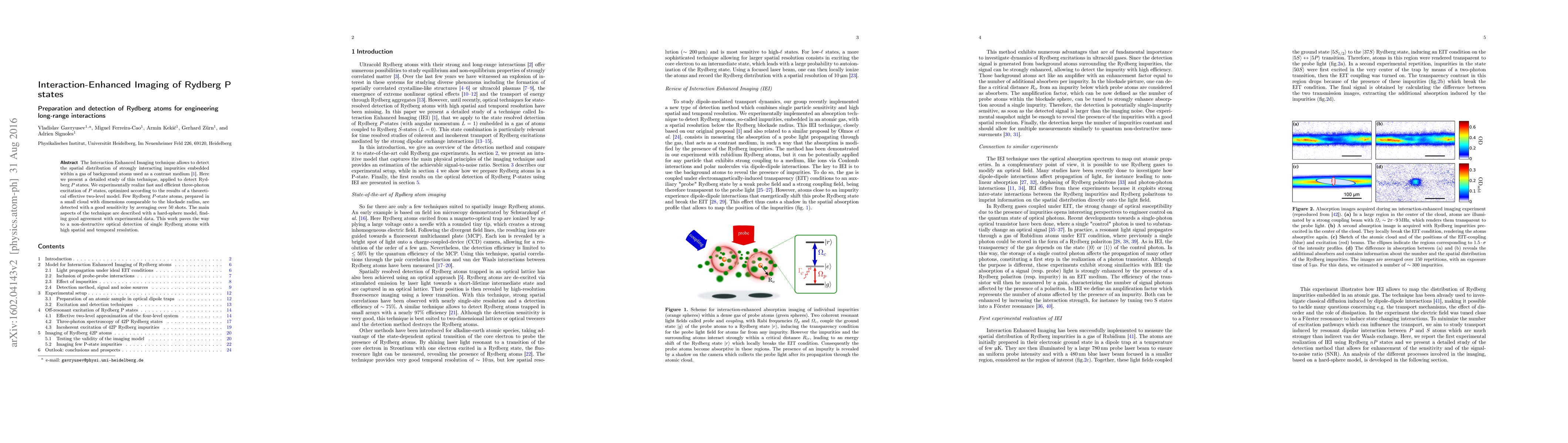 This paper details the Interaction Enhanced Imaging technique for detecting Rydberg P states within a gas of background atoms, achieving efficient three-photon excitation and high sensitivity detection. The technique's effectiveness is validated through a hard-sphere model, promising non-destructive optical detection of single Rydberg atoms.