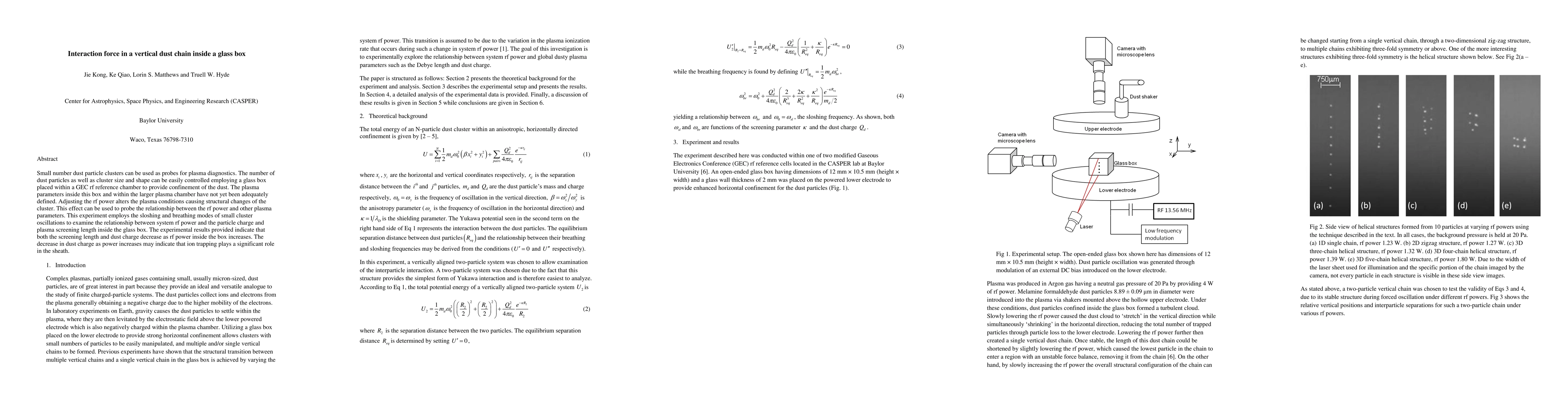 Researchers used a glass box to study how changes in rf power affect dust particles suspended in a plasma. They found that increasing the power reduced the dust charge and screening length.