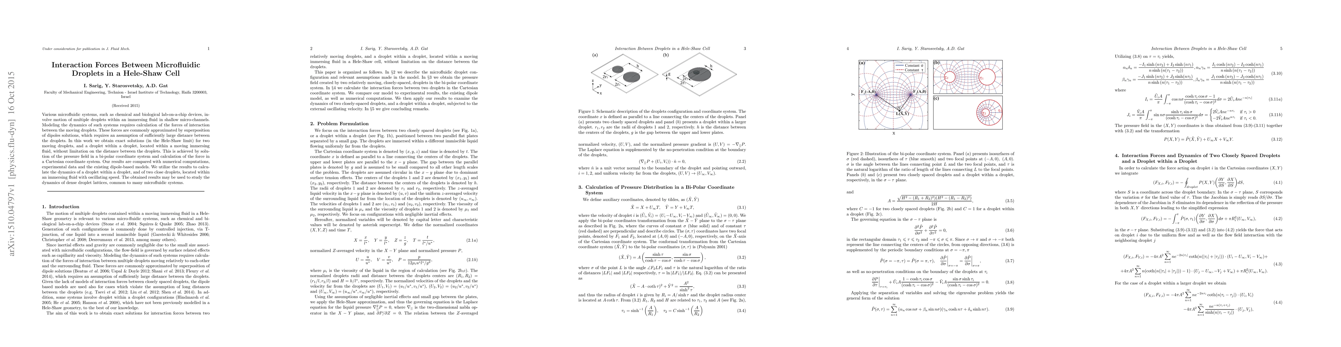 This paper presents exact solutions for interaction forces between microfluidic droplets in a Hele-Shaw cell, without the assumption of large droplet separation, and compares these results to numerical simulations, experimental data, and existing dipole-based models. The findings enhance the understanding of droplet dynamics in dense microfluidic systems.