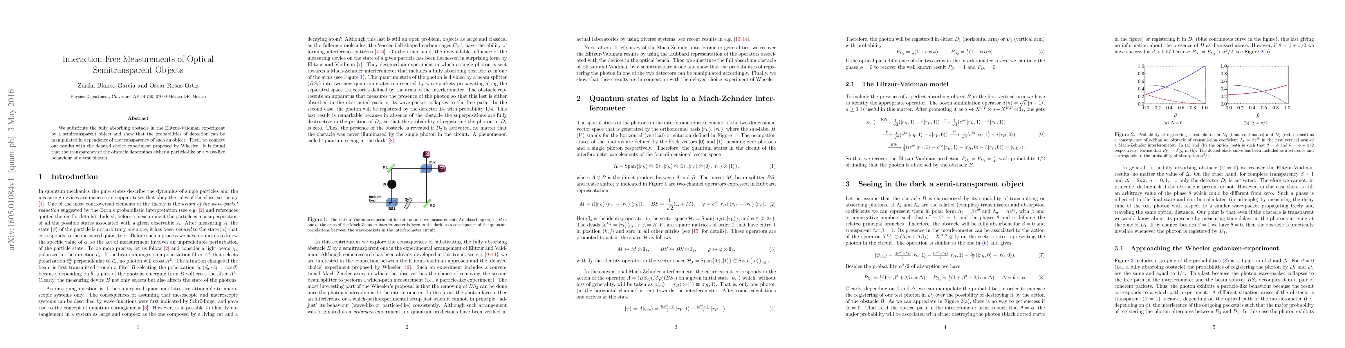 We substitute the fully absorbing obstacle in the Elitzur-Vaidman experiment by a semitransparent object and show that the probabilities of detection can be manipulated in dependence of the transparency of such an object. Then, we connect our results with the delayed choice experiment proposed by Wheeler. It is found that the transparency of the obstacle determines either a particle-like or a wave-like behaviour of a test photon.