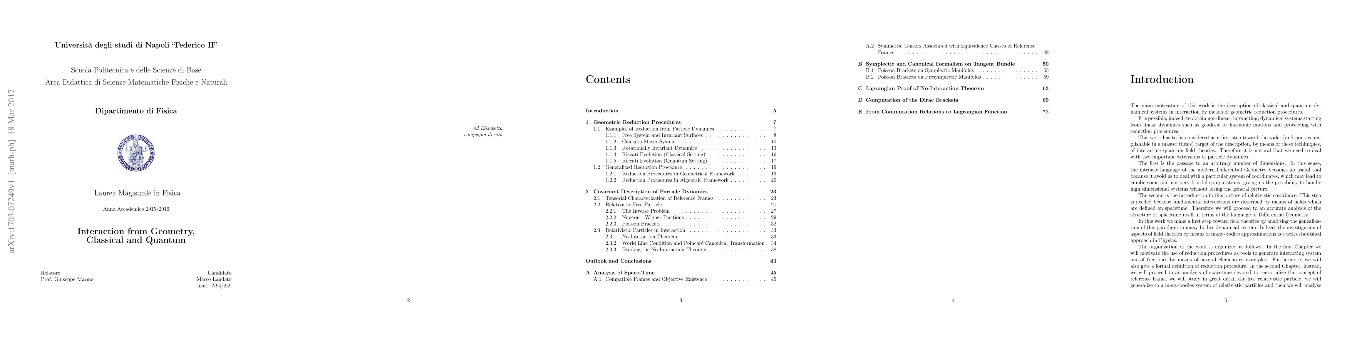 Researchers used geometric reduction to study classical and quantum interactions, finding that non-commutative positions are needed to describe even simple systems like the relativistic free particle. This has implications for Non-Commutative Geometry and Quantum Gravity.