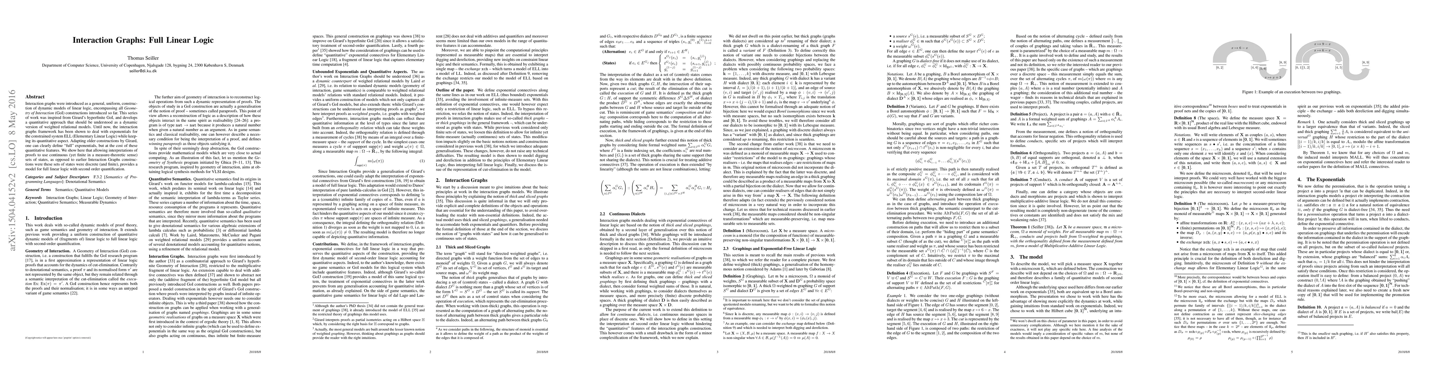 This paper introduces interaction graphs as a dynamic model for full linear logic, extending previous work on the Geometry of Interaction. It demonstrates that by using continuous sets of states, the framework can accommodate full exponentials while maintaining quantitative features, thus supporting second-order quantification in linear logic.
