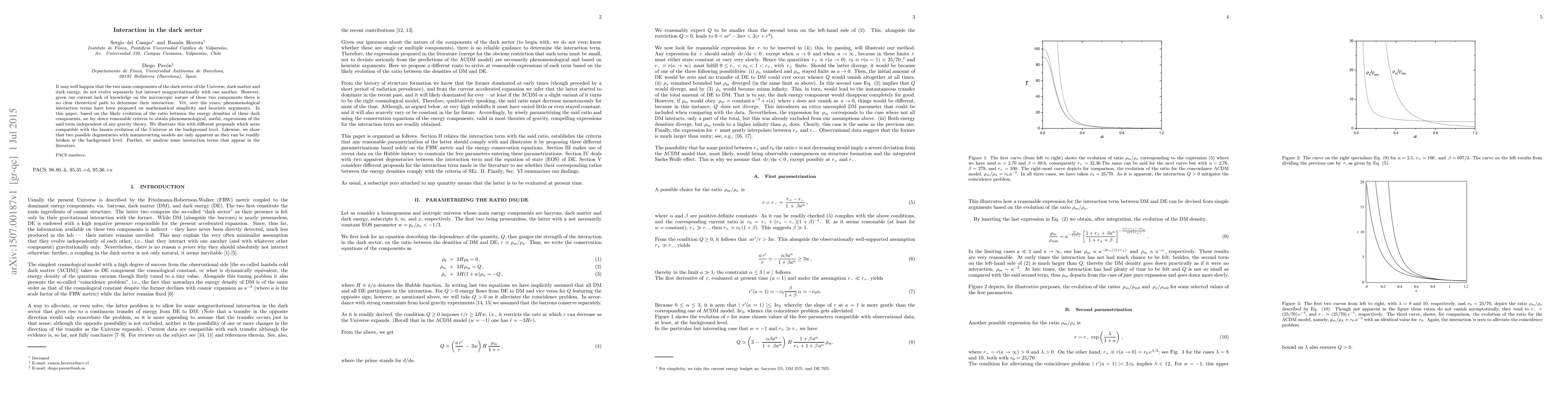 It may well happen that the two main components of the dark sector of the Universe, dark matter and dark energy, do not evolve separately but interact nongravitationally with one another. However, given our current lack of knowledge on the microscopic nature of these two components there is no clear theoretical path to determine their interaction. Yet, over the years, phenomenological interaction terms have been proposed on mathematical simplicity and heuristic arguments. In this paper, based on the likely evolution of the ratio between the energy densities of these dark components, we lay down reasonable criteria to obtain phenomenological, useful, expressions of the said term independent of any gravity theory. We illustrate this with different proposals which seem compatible with the known evolution of the Universe at the background level. Likewise, we show that two possible degeneracies with noninteracting models are only apparent as they can be readily broken at the background level. Further, we analyze some interaction terms that appear in the literature.
