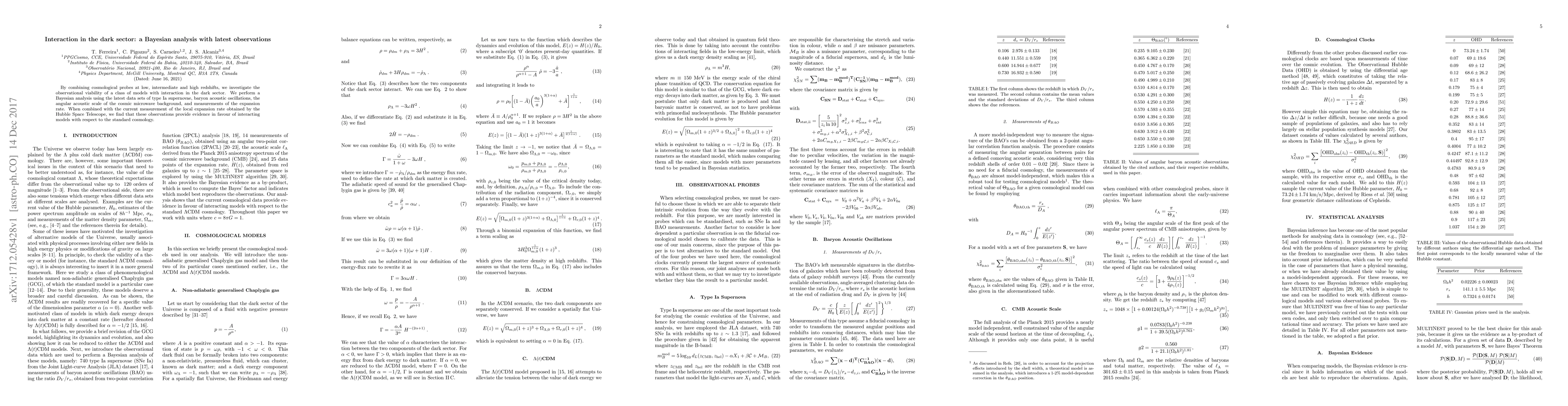 A Bayesian analysis of latest observations suggests that models with interaction in the dark sector provide evidence favoring these models over standard cosmology. The study combines data from type Ia supernovae, baryon acoustic oscillations, and other probes to make this conclusion.