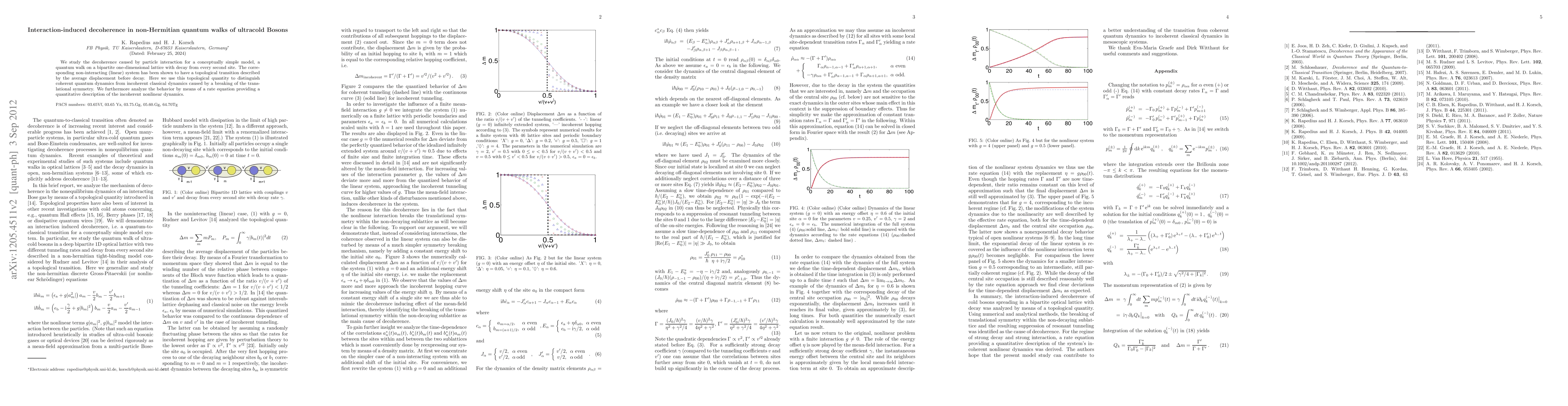 We study the influence of particle interaction on a quantum walk on a bipartite one-dimensional lattice with decay from every second site. The corresponding non-interacting (linear) system has been shown to have a topological transition described by the average displacement before decay. Here we use this topological quantity to distinguish coherent quantum dynamics from incoherent classical dynamics caused by a breaking of the translational symmetry. We furthermore analyze the behavior by means of a rate equation providing a quantitative description of the incoherent nonlinear dynamics.