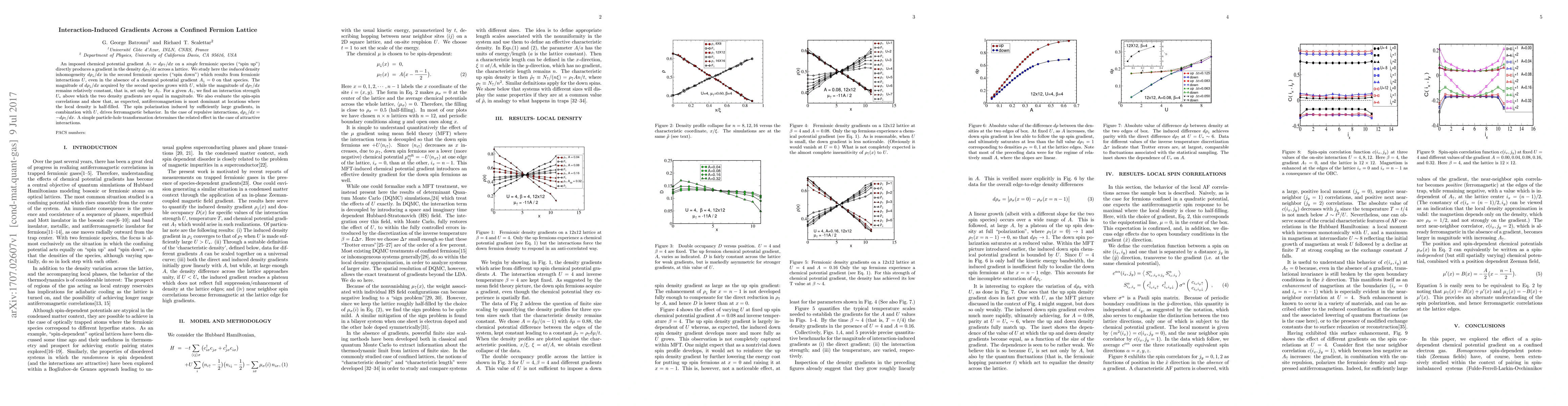 A research paper studies how a gradient in chemical potential affects fermionic interactions, leading to density gradients across a lattice, with implications for spin polarization and ferromagnetic behavior.