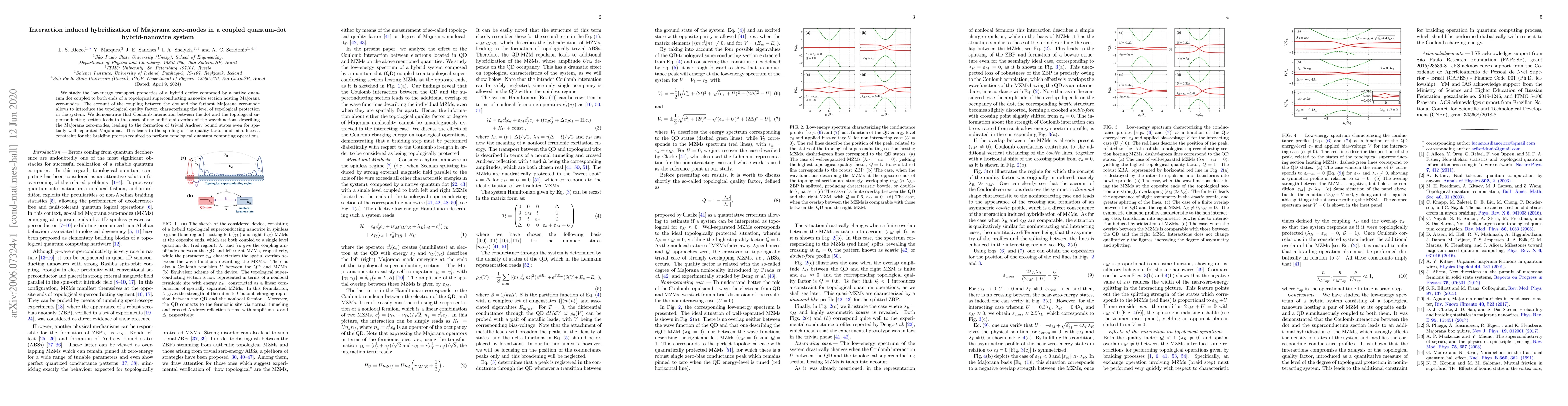 This research investigates a hybrid quantum dot-nanowire system where Majorana zero-modes exhibit interaction-induced hybridization due to Coulomb coupling, leading to the formation of trivial Andreev bound states and reducing the topological quality factor, which impacts the braiding process for quantum computing.