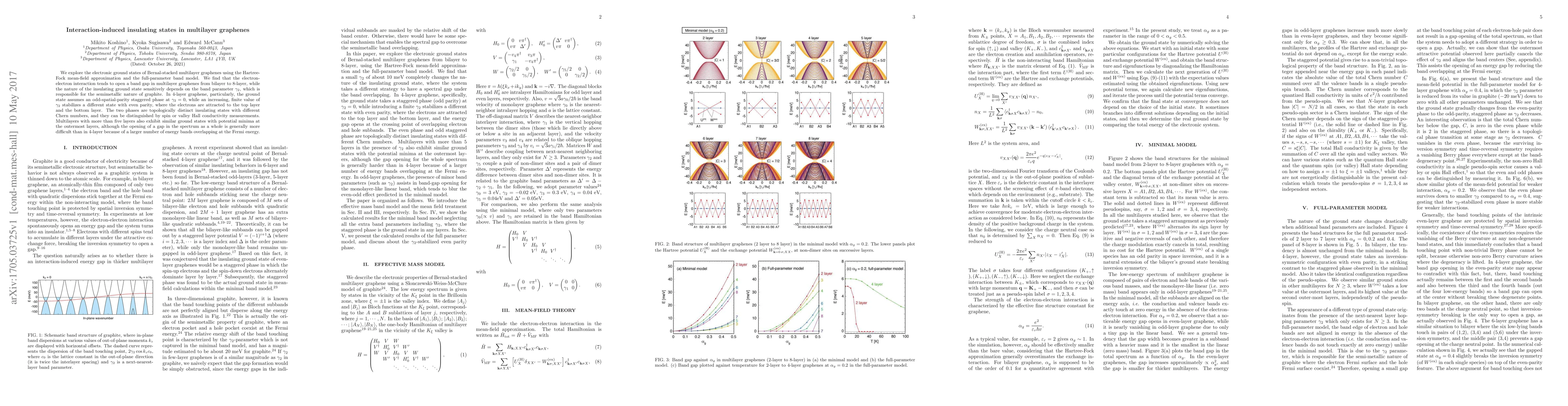 This research reveals that electron-electron interactions in Bernal-stacked multilayer graphenes lead to insulating states with band gaps, particularly evident in 4-layer graphene exhibiting odd- and even-parity staggered phases. These phases are topologically distinct and can be identified through spin or valley Hall conductivity measurements.