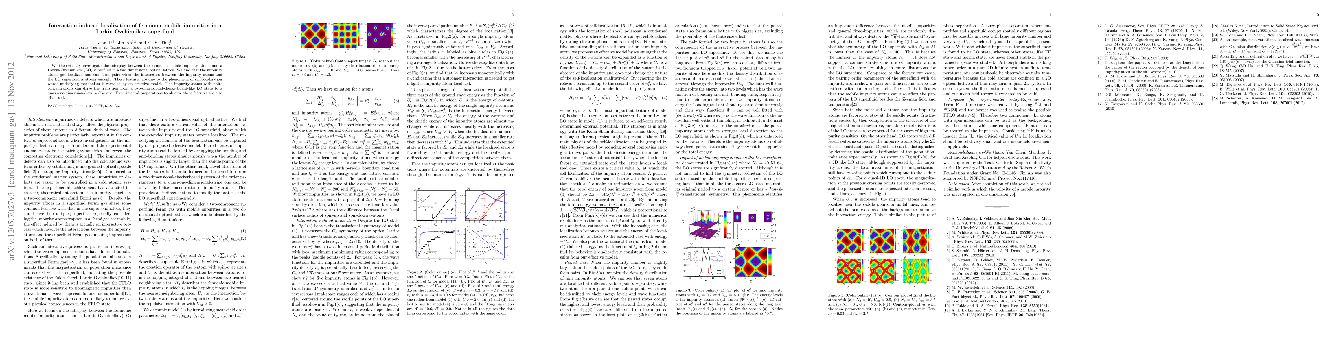 We theoretically investigate the interplay between the fermionic mobile impurity atoms and a Larkin-Ovchinnikov (LO) superfluid in a two dimensional optical lattice. We find that the impurity atoms get localized and can form pairs when the interaction between the impurity atoms and the LO superfluid is strong enough. These features are due to the phenomena of self-localization whose underlying mechanism is revealed by an effective model. The impurity atoms with finite concentrations can drive the transition from a two-dimensional-checkerboard-like LO state to a quasi-one-dimensional-stripe-like one. Experimental preparations to observe these features are also discussed.