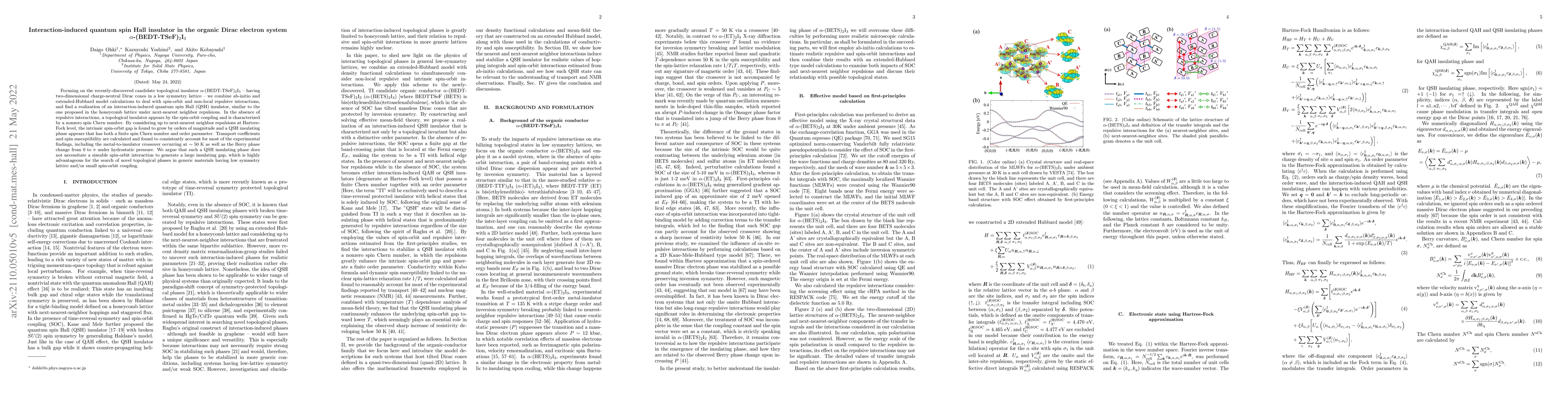 The research identifies a new interaction-induced quantum spin Hall insulator in the organic material $alpha$-(BEDT-TSeF)$_2$I$_3$. Using ab-initio and extended-Hubbard model calculations, it shows that spin-orbit coupling and non-local repulsive interactions give rise to this topological phase, which could exist even in materials with weak spin-orbit coupling. The findings explain experimental observations and suggest potential for discovering topological phases in low symmetry lattices.