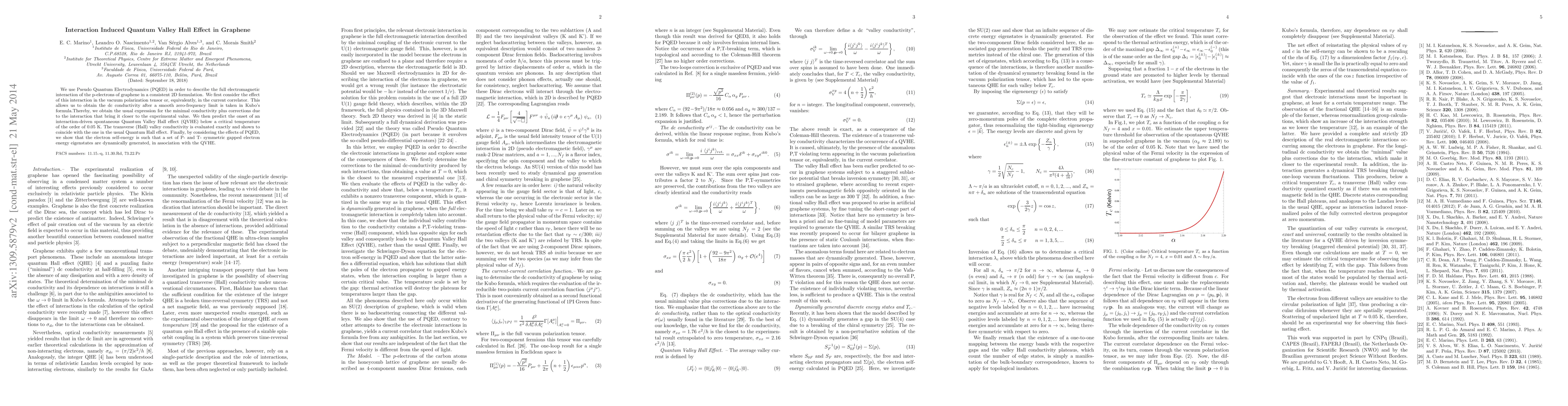 This research employs Pseudo Quantum Electrodynamics to explore graphene's electromagnetic interactions, predicting an interaction-driven Quantum Valley Hall Effect onset below 0.05 K, with transverse valley conductivity matching that of the Quantum Hall Effect, and dynamically generating P- and T-symmetric gapped electron eigenstates.
