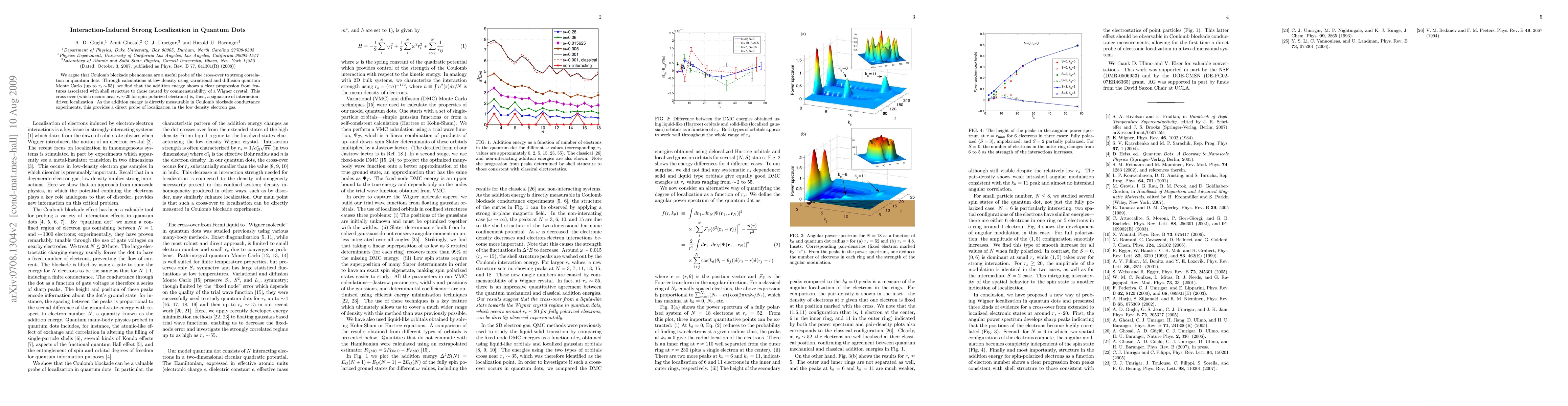 The research demonstrates that Coulomb blockade phenomena can indicate the shift to strong correlations in quantum dots. Using variational and diffusion quantum Monte Carlo calculations at low electron densities, the study reveals that the addition energy transitions from shell-structure features to Wigner crystal commensurability effects around r_s ~ 20 for spin-polarized electrons, signaling interaction-induced localization. This transition is directly observable in Coulomb blockade conductance experiments, offering a means to probe localization in low-density electron gases.