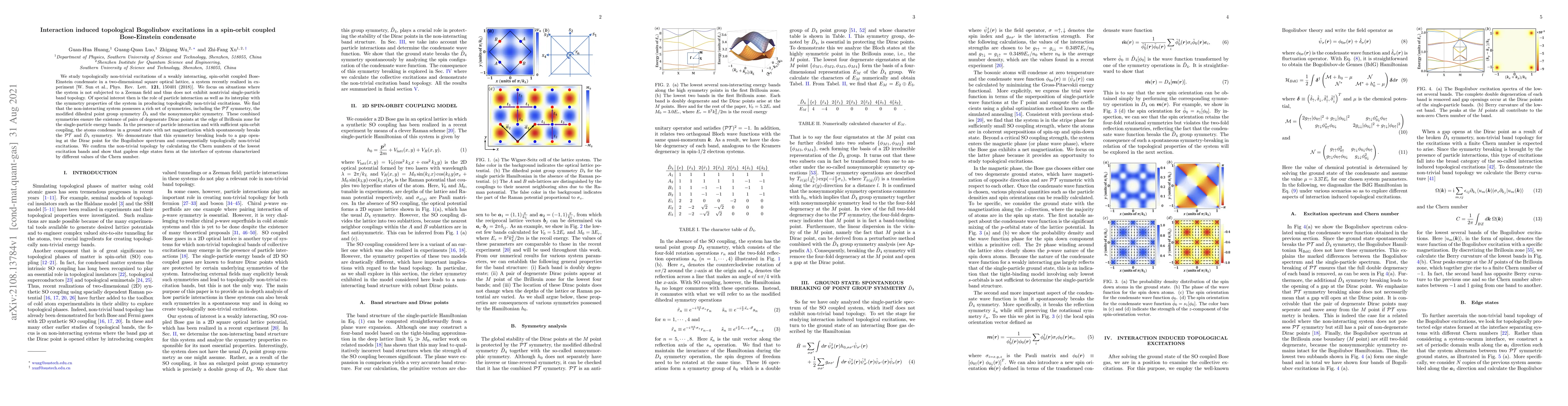 Researchers study topological excitations in a spin-orbit coupled Bose-Einstein condensate, finding that symmetry breaking leads to gap opening and non-trivial excitations.