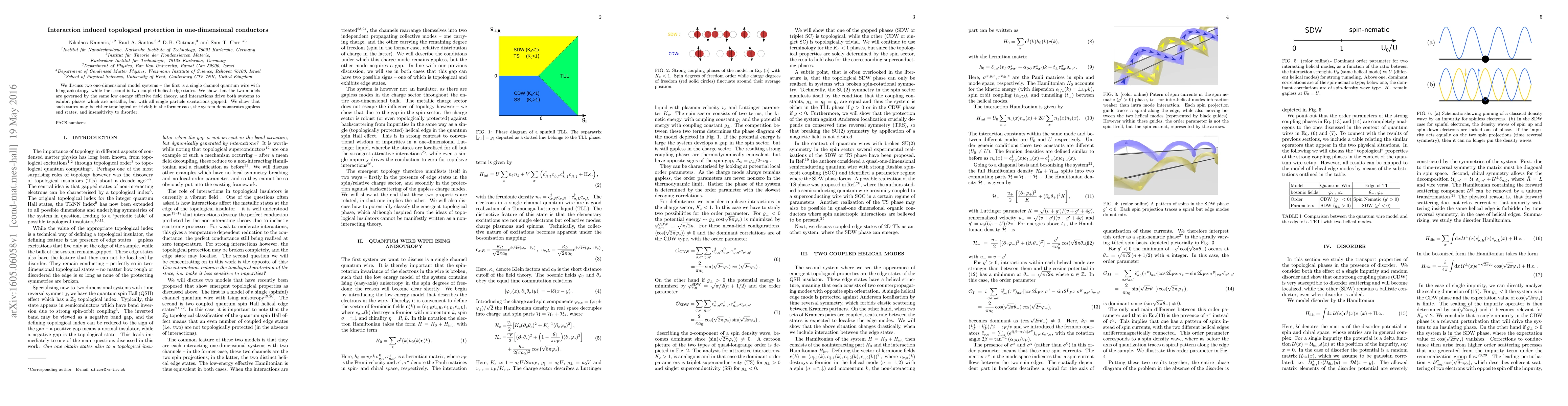 We discuss two one-dimensional model systems -- the first is a single channel quantum wire with Ising anisotropy, while the second is two coupled helical edge states. We show that the two models are governed by the same low energy effective field theory, and interactions drive both systems to exhibit phases which are metallic, but with all single particle excitations gapped. We show that such states may be either topological or trivial; in the former case, the system demonstrates gapless end states, and insensitivity to disorder.