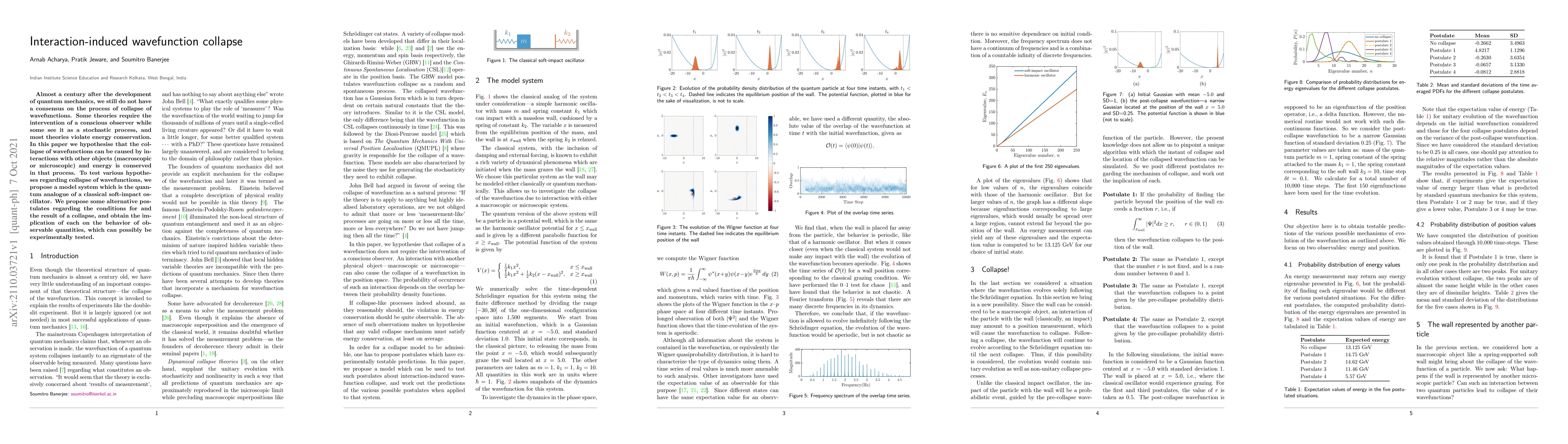 Almost a century after the development of quantum mechanics, we still do not have a consensus on the process of collapse of wavefunctions. Some theories require the intervention of a conscious observer while some see it as a stochastic process, and most theories violate energy conservation. In this paper we hypothesise that the collapse of wavefunctions can be caused by interactions with other objects (macroscopic or microscopic) and energy is conserved in that process. To test various hypotheses regarding collapse of wavefunctions, we propose a model system which is the quantum analogue of a classical soft-impact oscillator. We propose some alternative postulates regarding the conditions for and the result of a collapse, and obtain the implication of each on the behavior of observable quantities, which can possibly be experimentally tested.