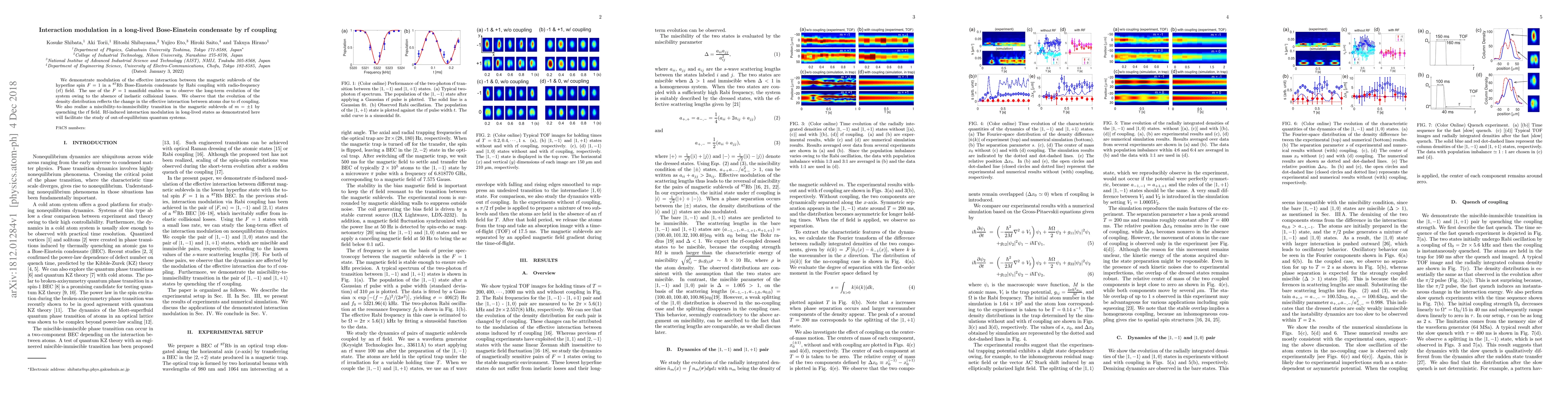 This paper demonstrates modulation of effective interaction in a $^{87}$Rb Bose-Einstein condensate using radio-frequency coupling, observing long-term evolution due to the absence of inelastic collisions. The study reveals a miscibility-to-immiscibility transition in magnetic sublevels, highlighting potential for studying out-of-equilibrium quantum systems.
