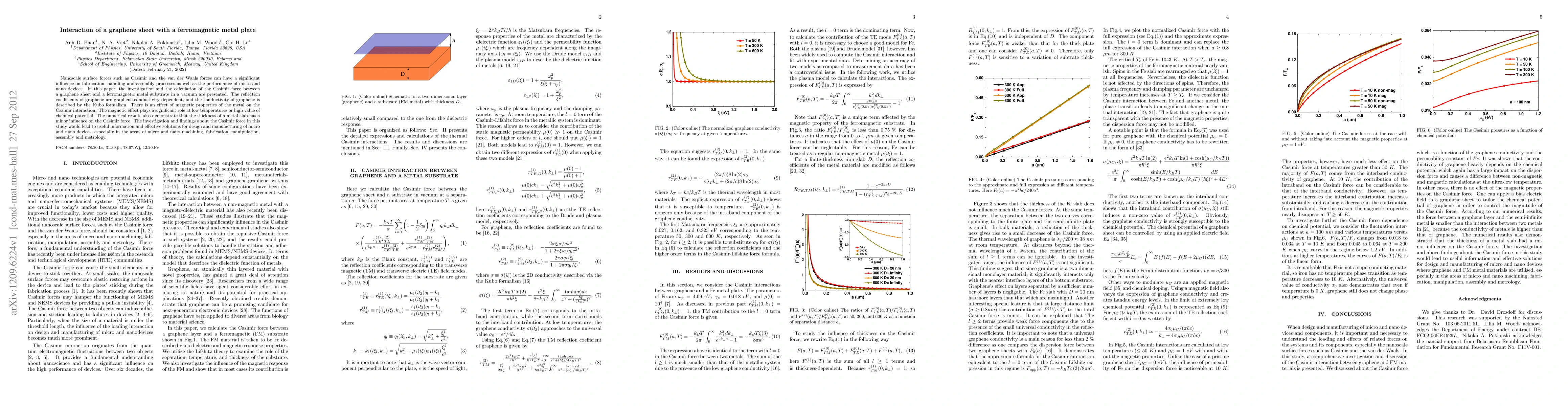 Nanoscale surface forces such as Casimir and the van der Waals forces can have a significant influence on fabrication, handling and assembly processes as well as the performance of micro and nano devices. In this paper, the investigation and the calculation of the Casimir force between a graphene sheet and a ferromagnetic metal substrate in a vacuum are presented. The reflection coefficients of graphene are graphene-conductivity dependent, and the conductivity of graphene is described by the Kubo formalism. There is an effect of magnetic properties of the metal on the Casimir interaction. The magnetic effect plays a significant role at low temperatures or high value of chemical potential. The numerical results also demonstrate that the thickness of a metal slab has a minor influence on the Casimir force. The investigation and findings about the Casimir force in this study would lead to useful information and effective solutions for design and manufacturing of micro and nano devices, especially in the areas of micro and nano machining, fabrication, manipulation, assembly and metrology.