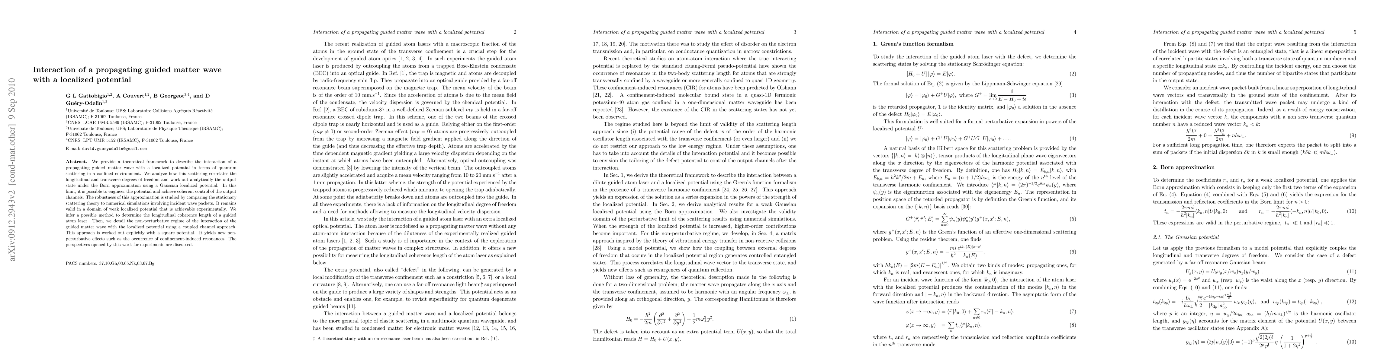 Researchers develop a theoretical framework to study the interaction between guided matter waves and localized potentials, revealing new effects such as confinement-induced resonances and coherent control of output channels.
