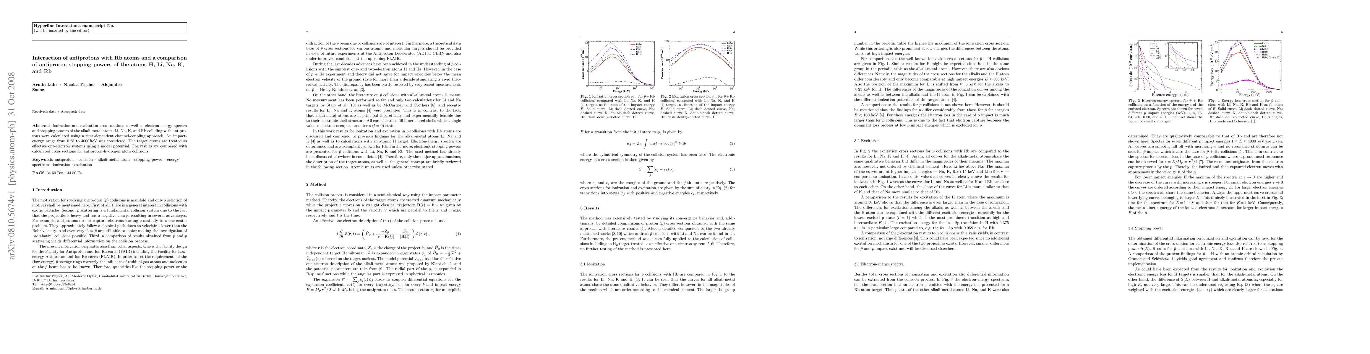 This study calculates ionization and excitation cross sections for antiprotons colliding with alkali metal atoms (Li, Na, K, Rb) using a time-dependent channel-coupling approach, comparing their stopping powers and results with those for antiproton-hydrogen interactions over an energy range from 0.25 keV to 4000 keV. The target atoms are modeled as effective one-electron systems.