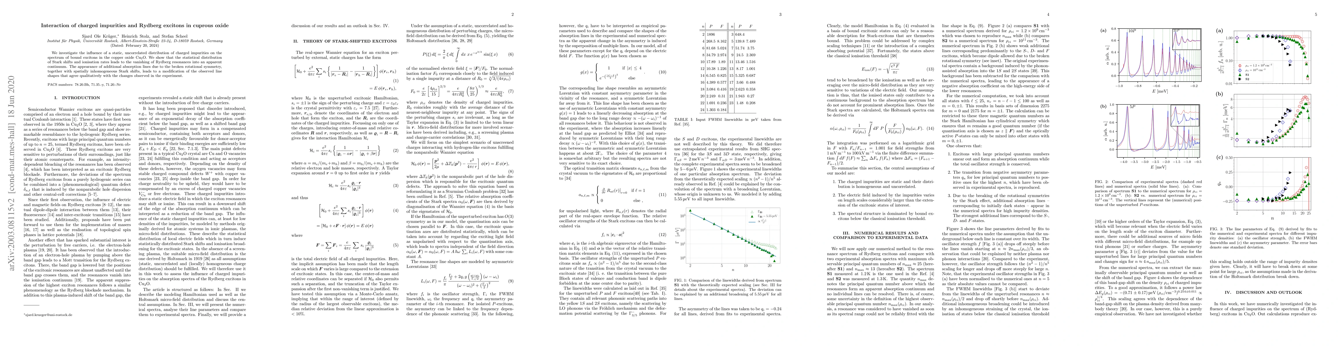 This paper examines how charged impurities affect the spectrum of bound excitons in cuprous oxide, demonstrating that they cause Rydberg resonances to merge into a continuum and introduce additional absorption lines due to broken rotational symmetry, aligning with observed experimental changes.