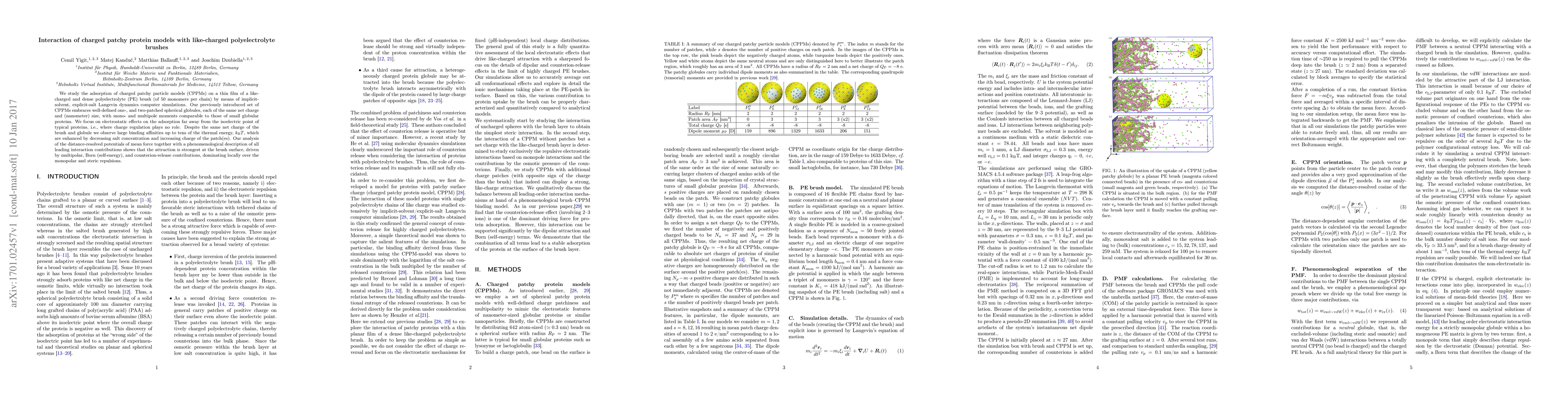 We study the adsorption of charged patchy particle models (CPPMs) on a thin film of a like-charged and dense polyelectrolyte (PE) brush (of 50 monomers per chain) by means of implicit-solvent, explicit-salt Langevin dynamics computer simulations. Our previously introduced set of CPPMs embraces well-defined one-, and two-patched spherical globules, each of the same net charge and (nanometer) size, with mono- and multipole moments comparable to those of small globular proteins. We focus on electrostatic effects on the adsorption far away from the isoelectric point of typical proteins, i.e., where charge regulation plays no role. Despite the same net charge of the brush and globule we observe large binding affinities up to tens of the thermal energy, kT, which are enhanced by decreasing salt concentration and increasing charge of the patch(es). Our analysis of the distance-resolved potentials of mean force together with a phenomenological description of all leading interaction contributions shows that the attraction is strongest at the brush surface, driven by multipolar, Born (self-energy), and counterion-release contributions, dominating locally over the monopolar and steric repulsions.
