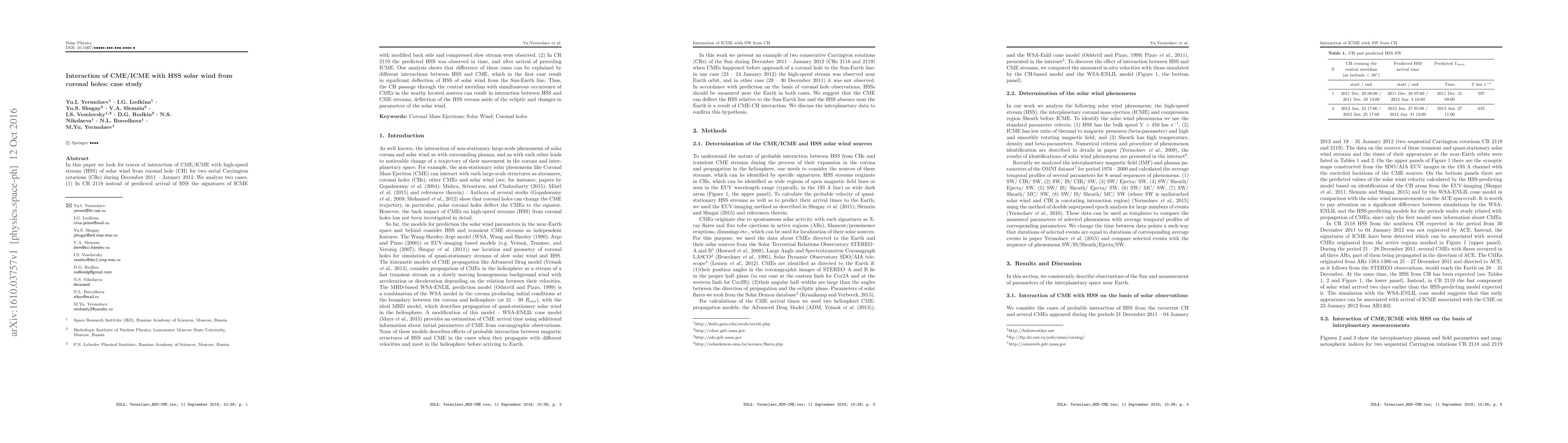 This paper investigates the interaction between Coronal Mass Ejections (CMEs)/Interplanetary Coronal Mass Ejections (ICMEs) and high-speed streams (HSS) from coronal holes during two Carrington rotations in late 2011. It finds significant deflection of HSS in one case due to interaction with CME, highlighting the impact of such interactions on solar wind parameters.