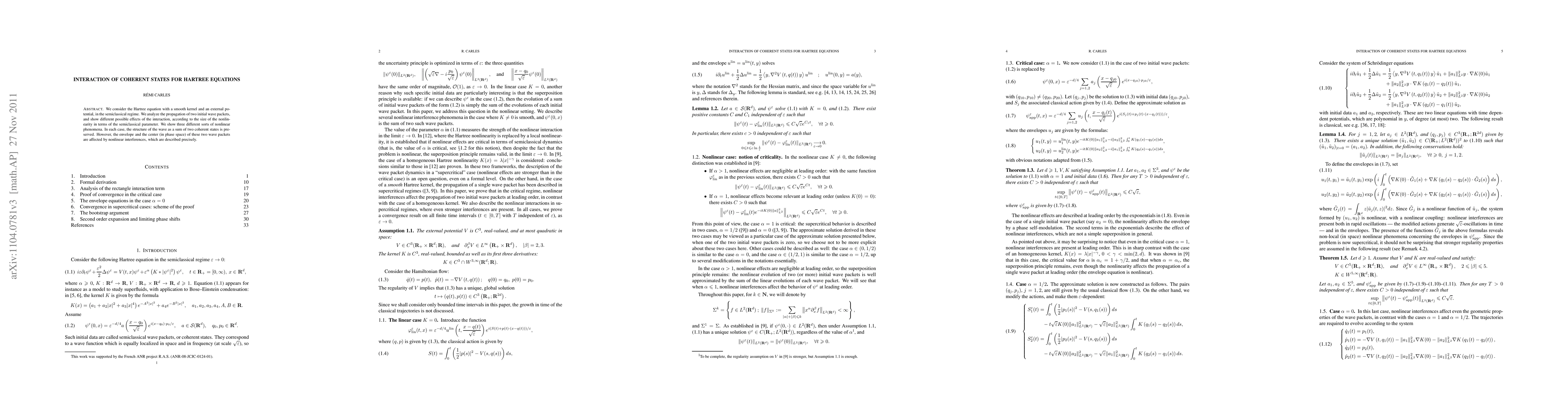 We consider the Hartree equation with a smooth kernel and an external potential, in the semiclassical regime. We analyze the propagation of two initial wave packets, and show different possible effects of the interaction, according to the size of the nonlinearity in terms of the semiclassical parameter. We show three different sorts of nonlinear phenomena. In each case, the structure of the wave as a sum of two coherent states is preserved. However, the envelope and the center (in phase space) of these two wave packets are affected by nonlinear interferences, which are described precisely.