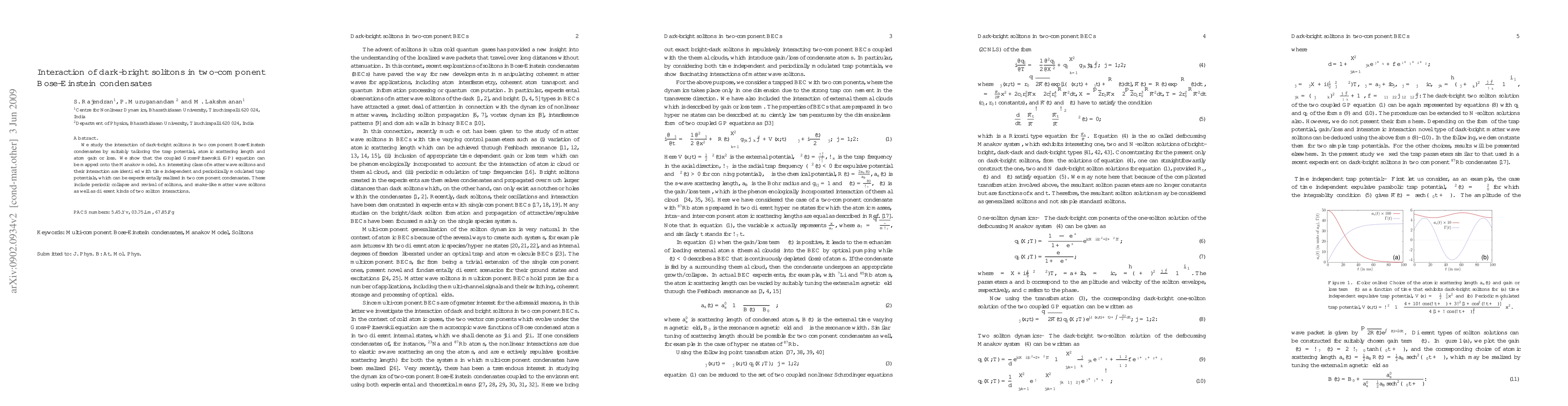 This paper investigates the interaction dynamics of dark-bright solitons in two-component Bose-Einstein condensates, demonstrating how these solitons can be controlled through tailored trap potentials and atomic interactions. The study reveals complex soliton behaviors, including periodic collapse and revival, snake-like solitons, and various two-soliton interactions, mapping the coupled Gross-Pitaevskii equation to the Manakov model for analysis.
